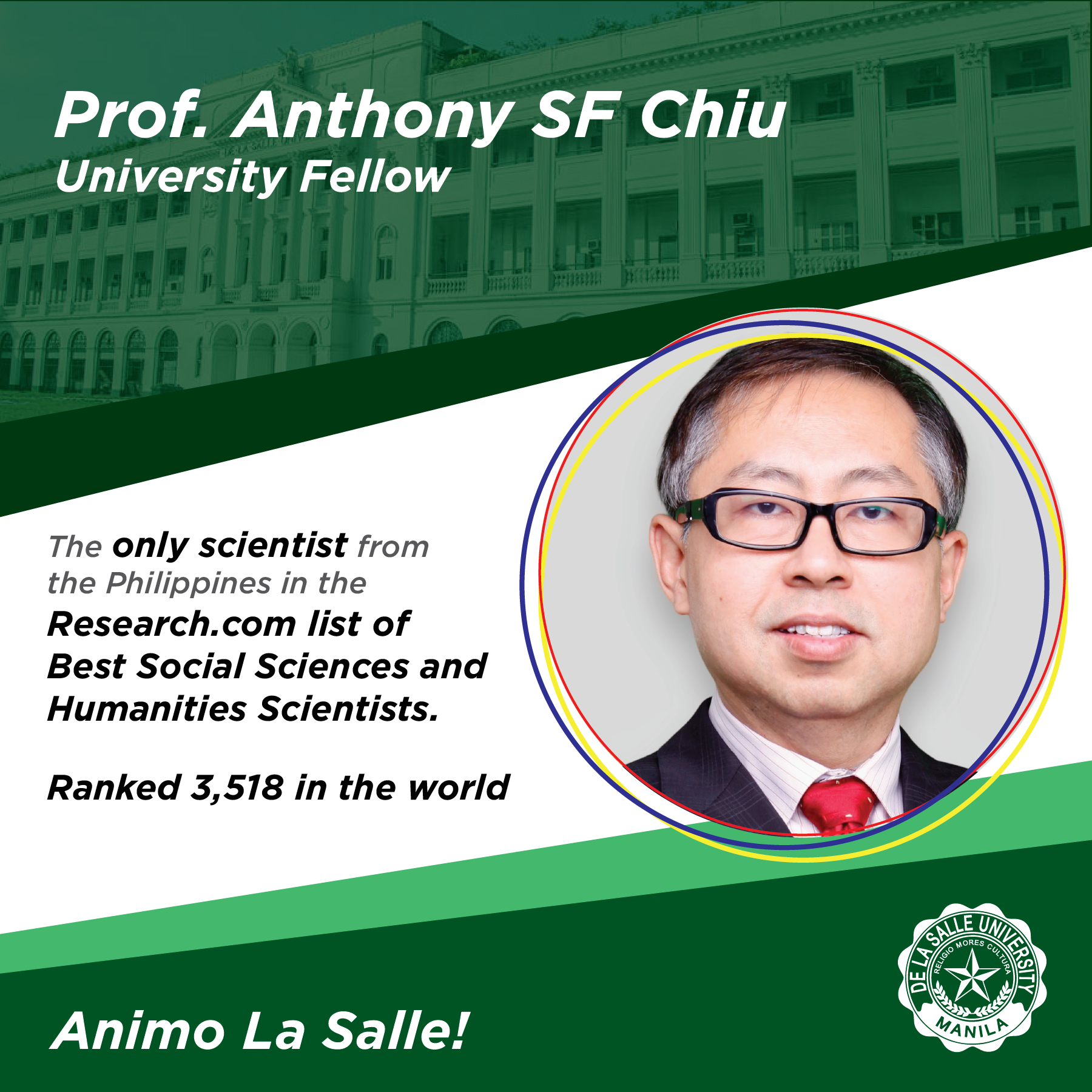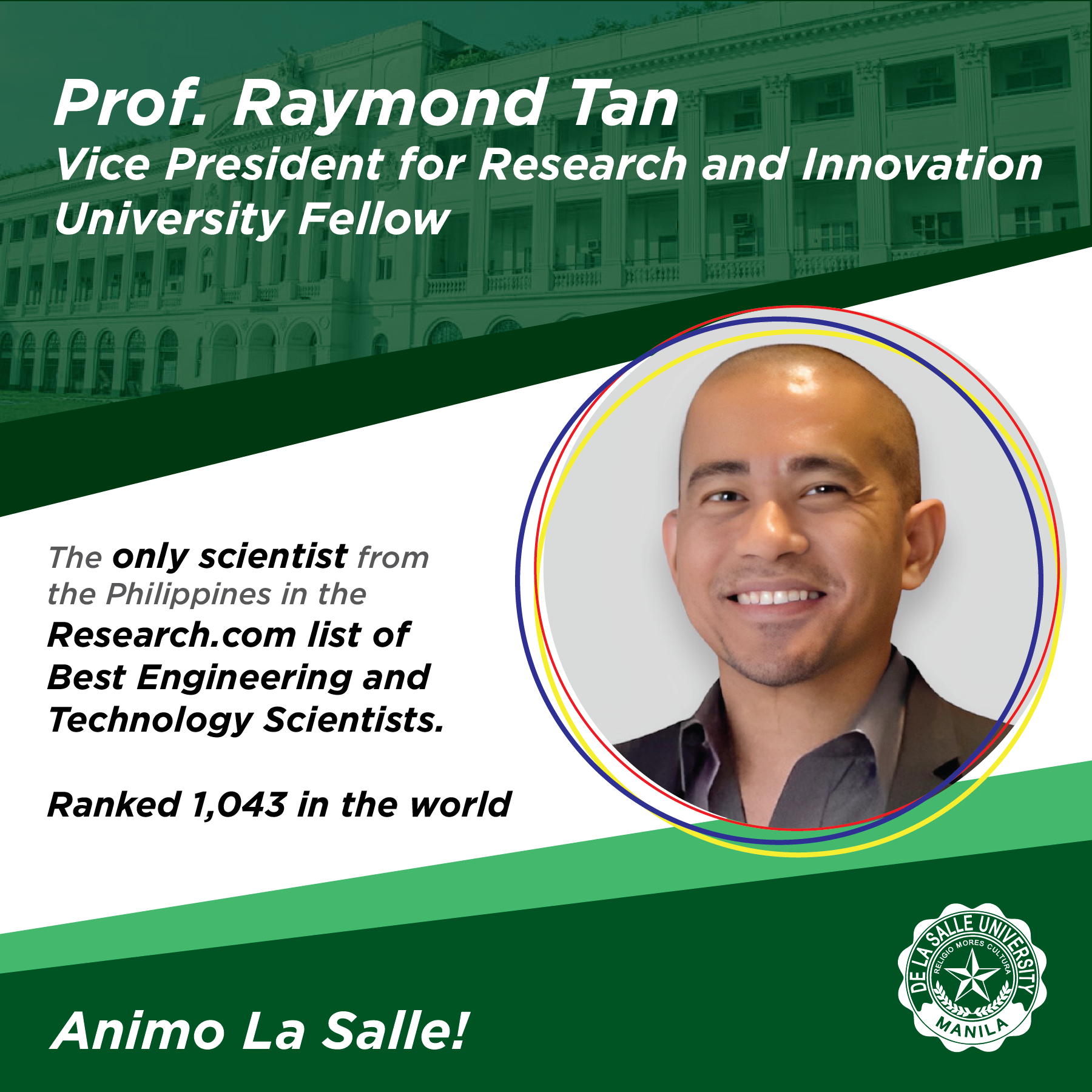 Prof. Raymond Tan and Prof. Anthony SF Chiu, both University Fellows and Distinguished Full Professors of the Departments of Chemical Engineering and of Industrial and Systems Engineering, respectively, are the only scientists from the Philippines in their respective disciplines.