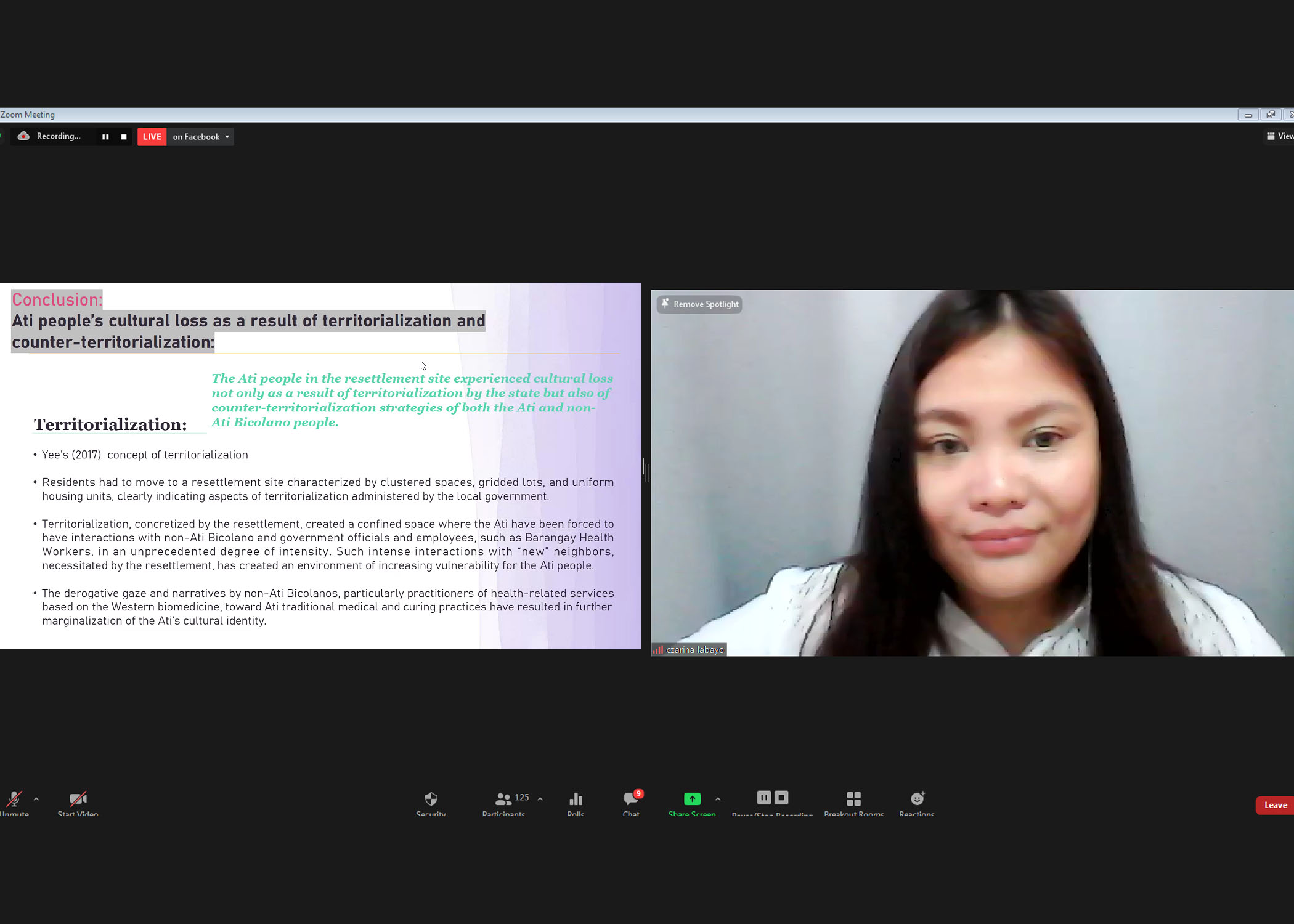 A presentation entitled “Disaster, Resettlement, Vulnerability: A Case Study of Indigenous People in the Bicol Region of the Philippines” was hosted by the Social Development Research Center on March 4 over Zoom. During the webinar, Dr. Czarina Labayo of the DLSU Department of Sociology and Behavioral Science described the plight of the indigenous Ati people in their resettlement in a safe zone just outside the Mayon Volcano National Park. Based on her doctoral dissertation, her talk was the first in SDRC’s webinar series for 2022, and it focused on the relationship between post-disaster resettlement and the vulnerability caused by culture loss among IPs. As a participant observer in the study, Dr. Labayo witnessed how the Ati continue to live in danger despite their transfer from the foot of Mayon to housing in the San Andres Resettlement Site in Sto. Domingo, Albay, because their traditional health system is being replaced by Western bio-medical practices.