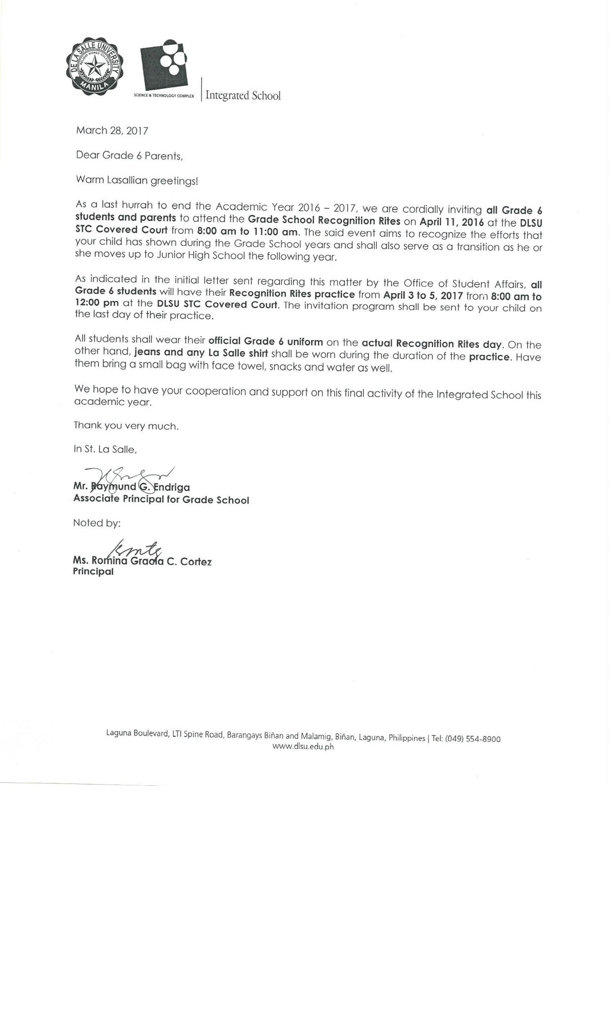 • Grade School Recognition Rites