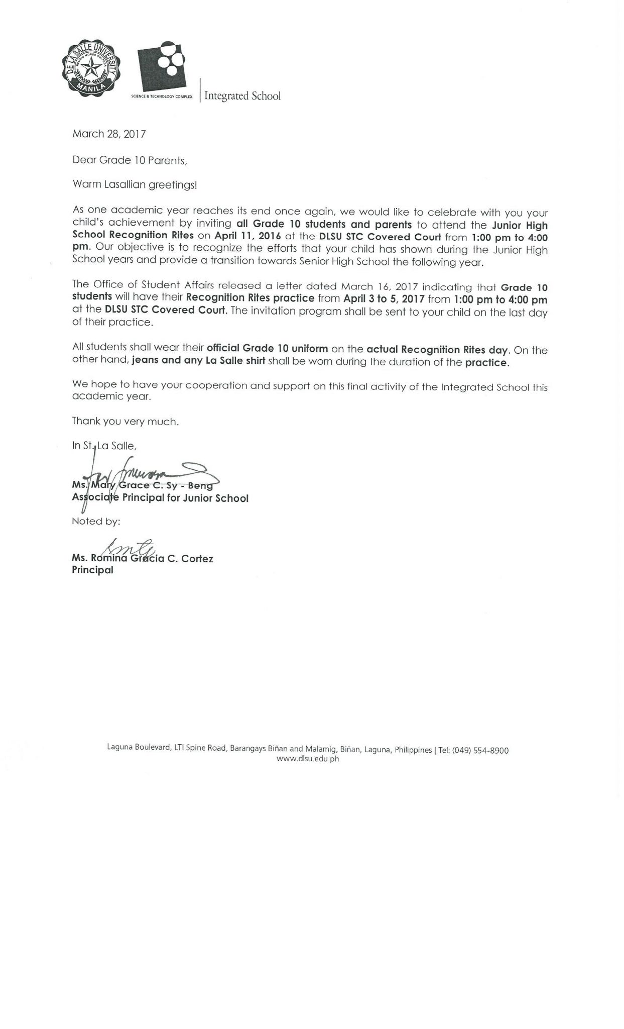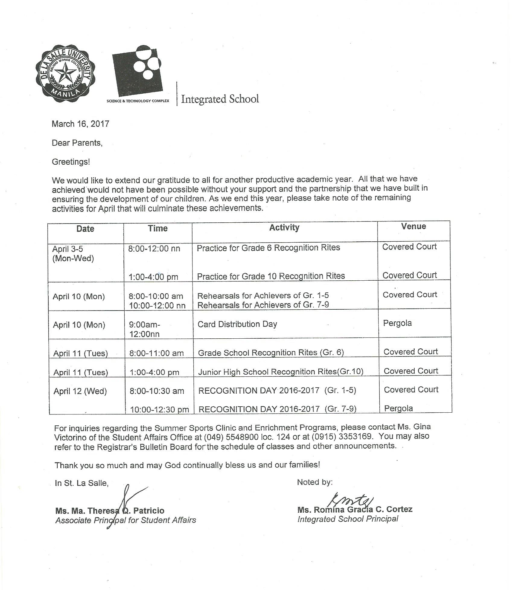 • Mandatory Drug Testing for all Secondary Students of the Integrated School AY1718
