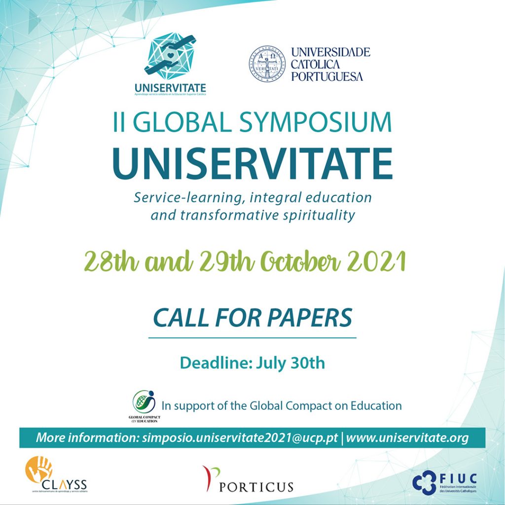 UNISERVITATE, the global network for the promotion of Service-Learning in Catholic Higher Education Institutions (CHEI), will be holding its 2nd Global Symposium (Virtual) on October 28-29, 2021 with the theme: “Service-Learning, Integral Education and Transformative Spirituality.”