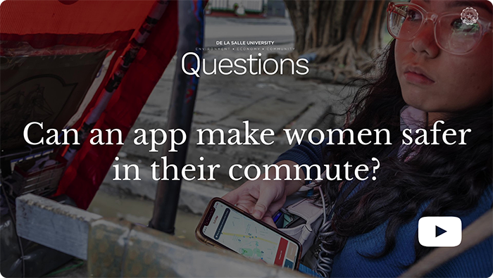 and Psychology faculty member Dr. Homer Yabut, Philosophy faculty member Rosallia Domingo, and Sociology and Behavioral Sciences Professor Dr. Melvin Jabar, Biana focused on women transit users’ lived experiences and stated needs and the group soon came up with the SafeHer App.