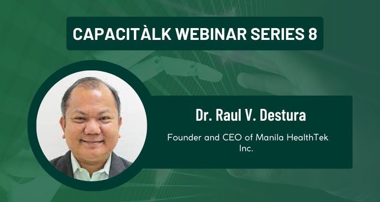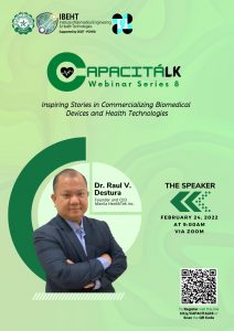 For CAPACITÀLK Webinar Series 8: Inspiring Stories in Commercializing Biomedical Devices and Health Technologies, we will feature Dr. Raul V. Destura, doctor-scientist-entrepreneur who has been recognized as one of the Top 100 Asian scientists by Asian Science Magazine and a gold medal recipient at the 46th International Invention Exhibition in Geneva, Switzerland.