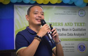 “We have to compete – with ourselves.”This was the reality met by faculty researchers, as depicted by Davao Oriental State University (DORSU) Vice President for Planning and Finance Roy M. Padilla as he opened the final session in SDRC’s nationwide Capacity Building Training Series held on May 26. Noting that the contribution of the school’s Research Division contributed much toward its elevation to state university status, he acknowledged that most studies were conducted in the area of applied sciences, while those in the social sciences were lacking. Thus the engagement with DLSU-SDRC was a first step toward resolving the situation.