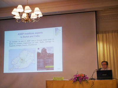 Among the presentors were two members of the Civil Engineering Department of De La Salle University. Dr. Lessandro Garciano, Associate Professor, presented the “Seismic Risk Assessment of Heritage Structure Using Fragility and Net Present Value Approach.” This paper was co-authored with MSCE student Michael Baylon. The presentation highlighted the post-scenario at the Bohol earthquake (2013) and the utilization of fragility curves to assess the risk for buildings. Dr. Garciano discussed the overview of the methodology and also integrated into the study a economic approach to check the feasibility of the proposed method.