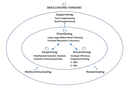 A grounded theory study of sixteen presidents of higher education institutions in the national capital region that have been granted autonomous status by the Commission on Higher Education (CHED) was conducted over a span of five months. The results showed that, to lead their organizations well, these top leaders follow a cyclical basic social process that we call simulchieving forward. The process involves first determining aims that not only connect with the present (current school realities and major trends in higher education) but also with the future (a compelling long-term vision for the university) as well as with the past (the essence of the vision of the founder); and then constantly moving forward on those aims, taking advantage of any synergies arising from simultaneously achieving apparently conflicting aims.