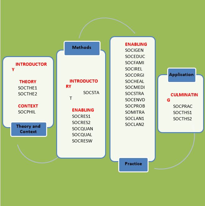 | MAJOR4 | Sociological Theories (SOCTHE1) | 3 | CMO40 Core Subject | |