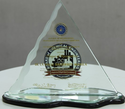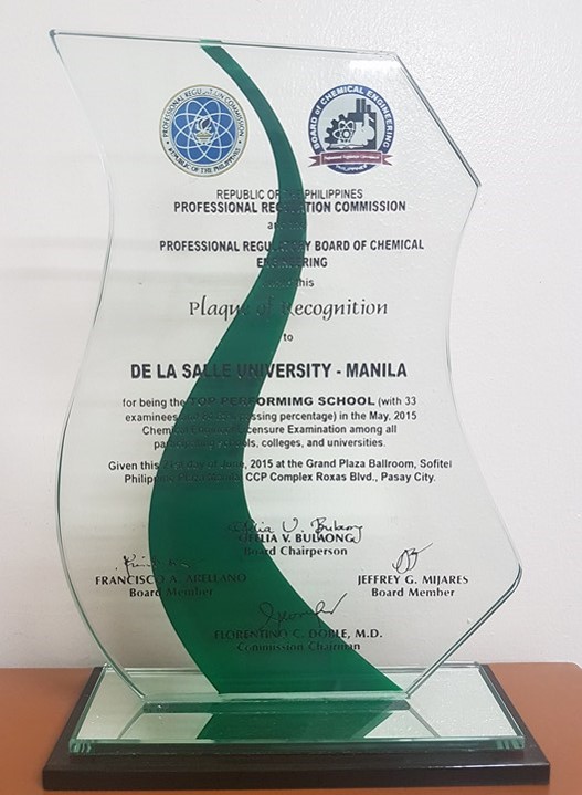 ![]() Top Performing School in the May 2015 ChE Licensure Examination DLSU Passing Rate of 84.85% National Passing Rate of 59.01% |