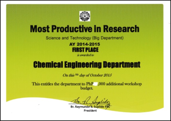 ![]() Most Productive in Research (Big Department) Academic Year 2014-2015 |