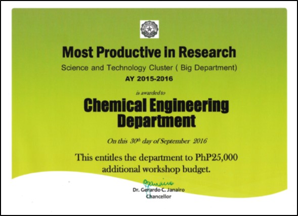 ![]() Most Productive in Research (Big Department) Academic Year 2015-2016 |