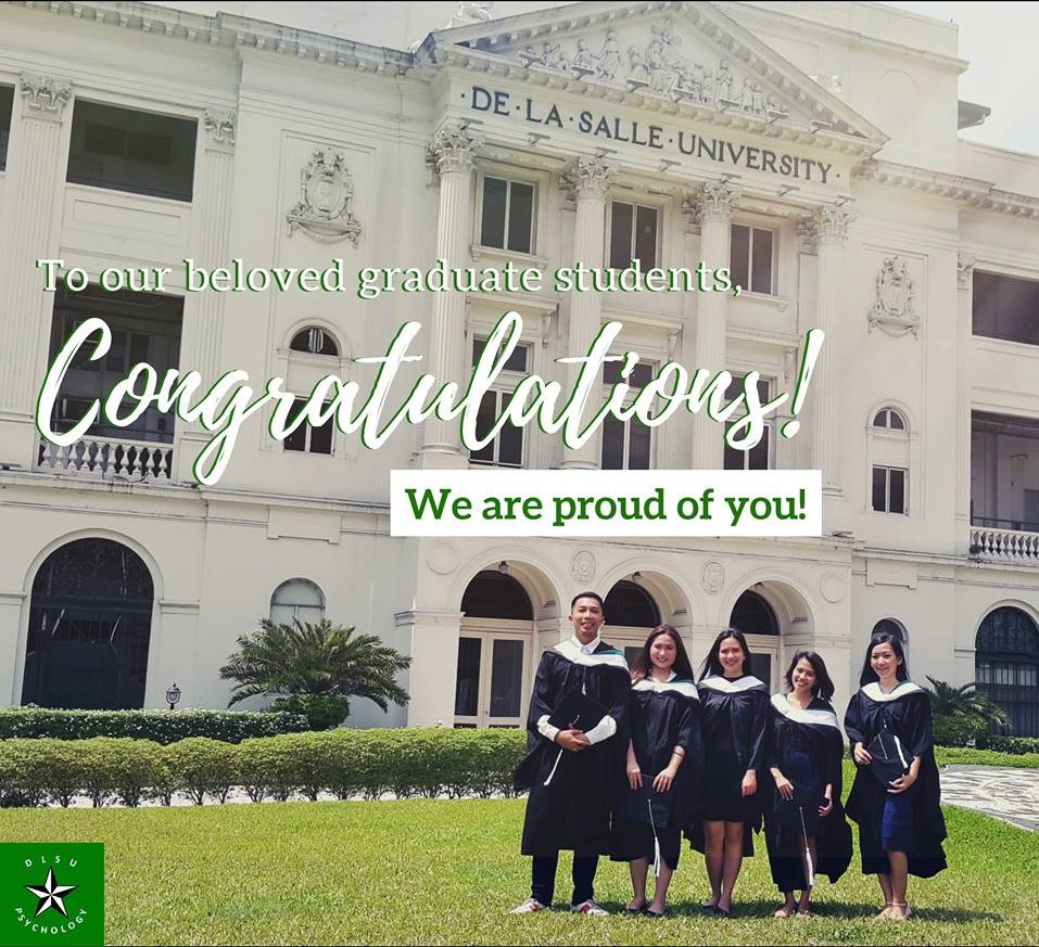 Pub by: Angela Lorraine CunananTo our beloved graduate students, we give our warmest congratulations ! You have made us in the psychology department very proud. We wish you all the best for the future. Hats off the graduate! 💚🎓