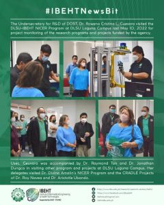 The Undersecretary for R&D of DOST, Dr. Rowena Cristina L. Guevara visited the DLSU-IBEHT NICER Program at DLSU Laguna Campus last May 10, 2022 for project monitoring of the research programs and projects funded by the agency.