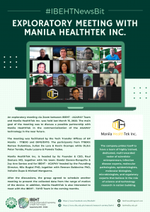 Last March 15, the IBEHT team met with Manila Healthtek Inc. with regards to possible partnership with IBEHT projects, starting with AGAPAY. This possible future collaboration with Manila Healthtek Inc. will help us in the commercialization of our projects.