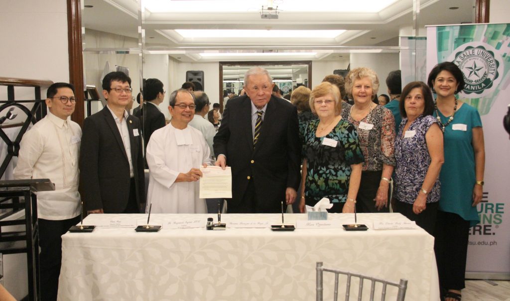 De La Salle University President Br. Raymundo Suplido FSC and DLSU alumnus Geronimo Berenguer de los Reyes, Jr. signed a Deed of Donation in a ceremony last August 8, 2018 to establish the John and Maria Teresa Oppenheimer Scholarship Endowment Fund for Business Management and Engineering.
