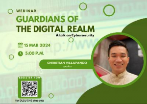Calling all DLSU Senior High School students to join us for an eye-opening session on cybersecurity with our speaker Mr. Christian Villapando.  Let us uncover the thrilling world of cybersecurity and its vast and promising opportunities.  Dive deep into the ever-evolving cybersecurity landscape and discover why experts in this field are in high demand.  Learn how you can become a Guardian of the Digital Realm and secure a bright future in this dynamic industry.