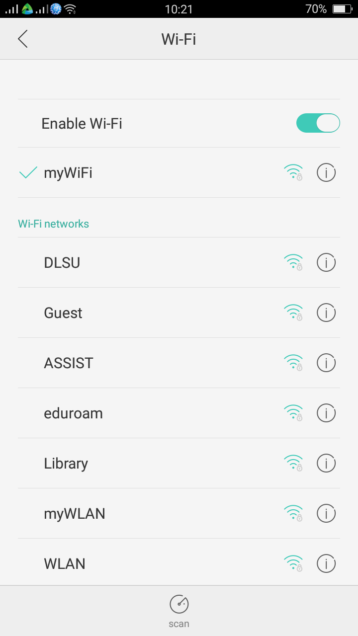 After you join the network, you’ll see  orConnected next to the myWiFi.