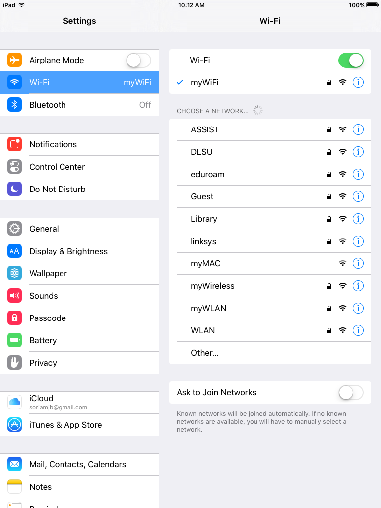 3.      Tap Wi-Fi button to turn on.