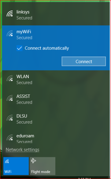 3. Select myWiFi and tick the Connect automatically check box. Click Connect.