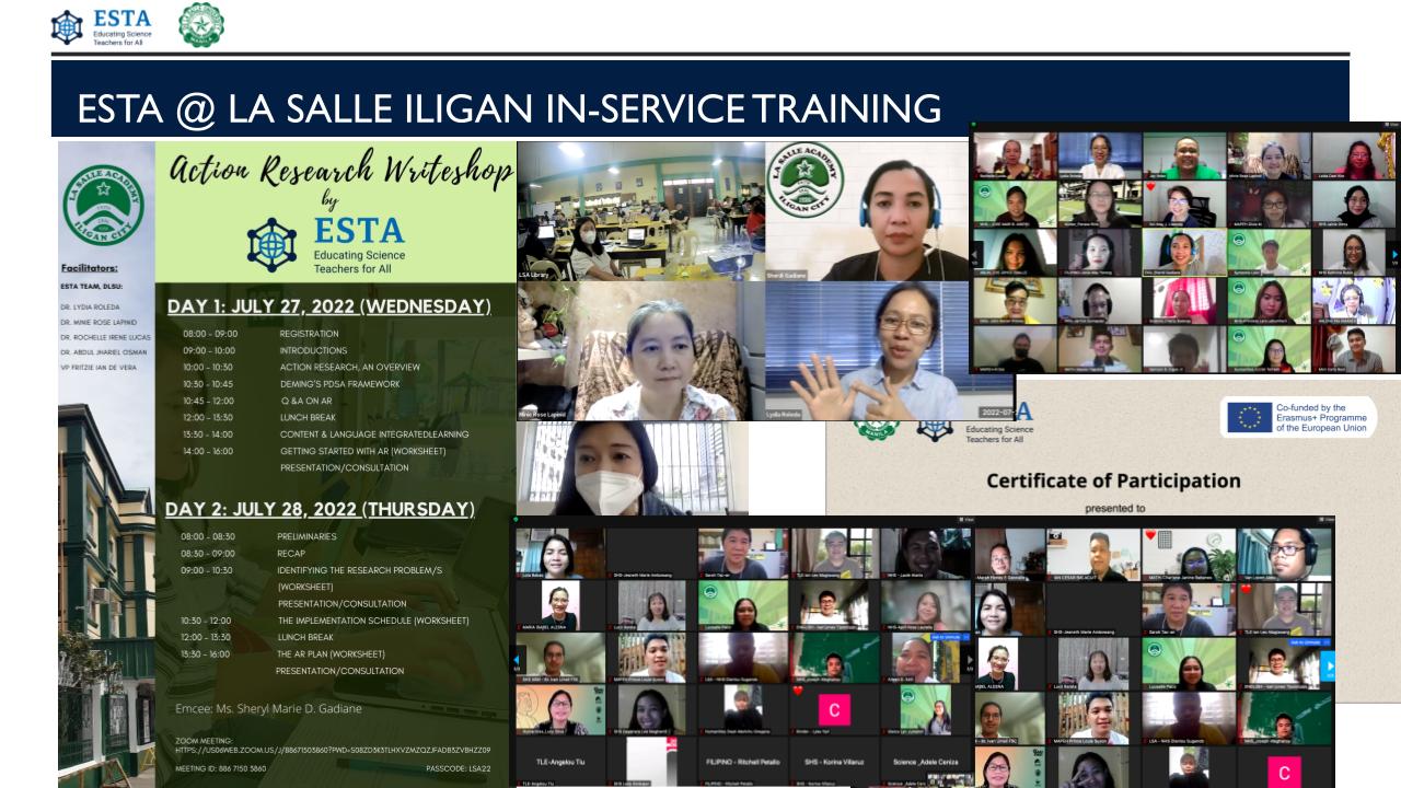The ESTA-DLSU team conducted a 2-day training workshop on Action Research. It was held  on July 27-28, 2022 via Zoom. It was participated by 78 faculty and staff of La Salle Academy, Iligan City.