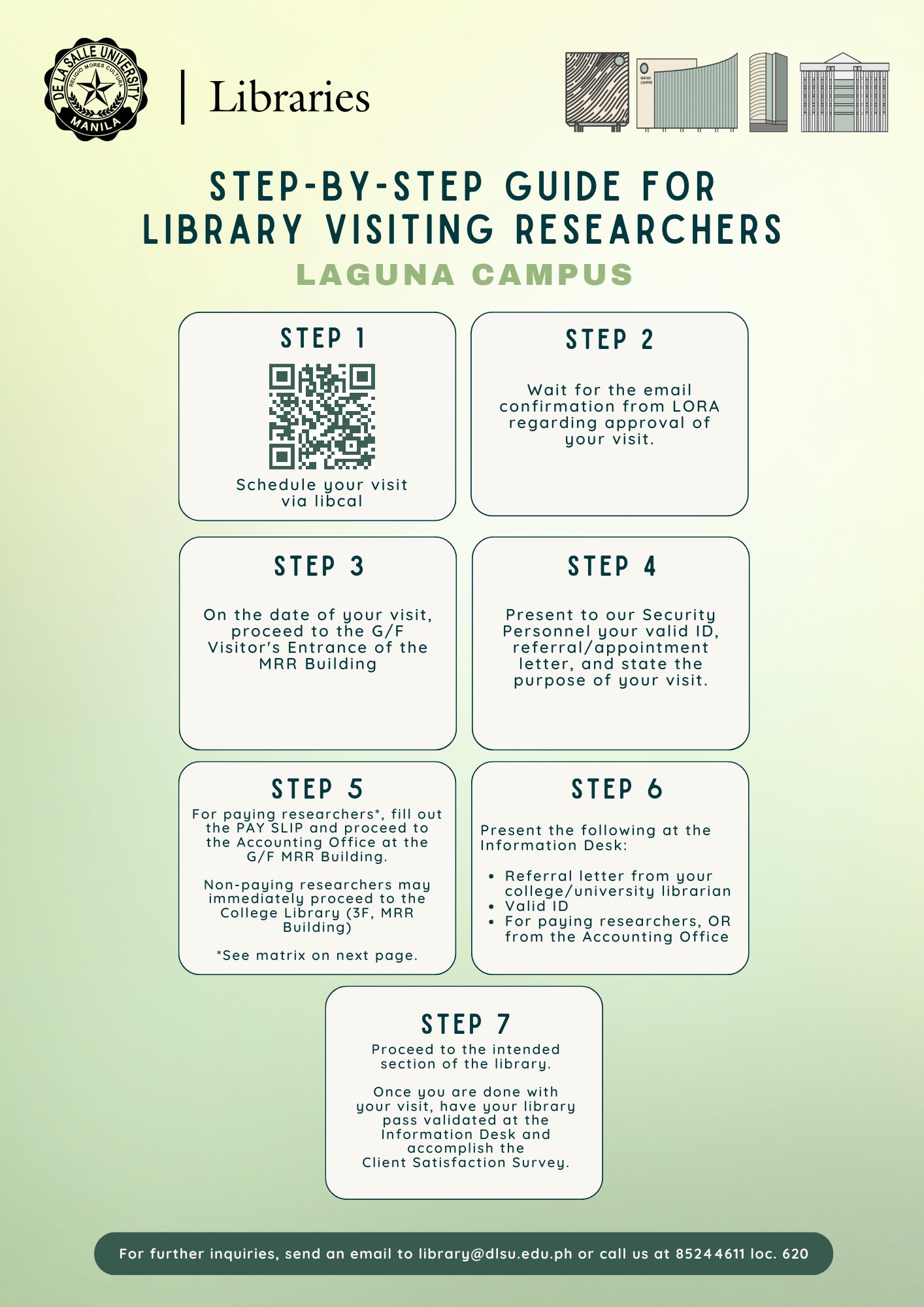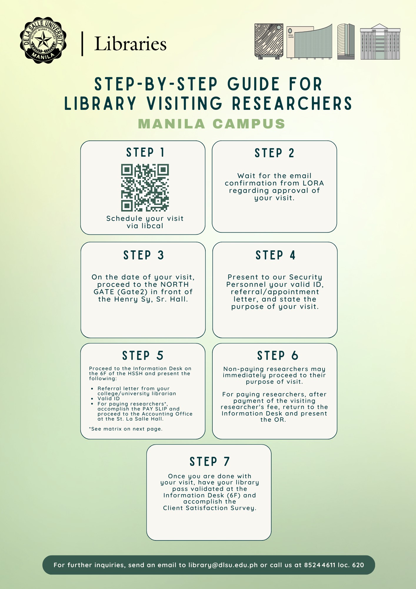 The following guidelines govern access and on-premise use of the De La Salle University Libraries’ resources and facilities by visiting users, effective Third Term, Academic Year 2022-2023