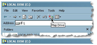 b. Click the Map Drive button in Windows Explorer. On the Map Network Drive dialog box, assign a drive letter for your web folder.