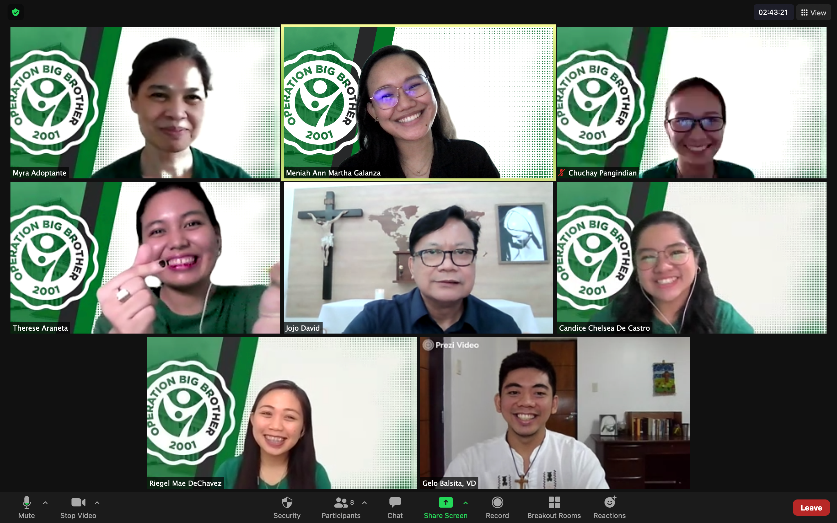The synchronous session, which was the major event of the culminating activity, covered the three parts of the program (Panimula, Mensahe, and Pahimakas). A total of 169 grade 10 OBB scholars participated virtually in the session through Zoom and YouTube. Special guests were also invited to participate in the program which were Mr. Bienvenido “Pet” Bautista, one of the founding fathers of OBB, as well as Bro. Gelo and Bro. Jojo, missionaries from Verbum Dei.