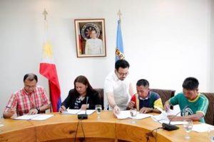 Signatories for the Memorandun of Agreement to jointly carry out the cultural education program were Br. Jose Mari L. Jimenez, FSC, Sector Leader for the De La Salle Brothers, Inc.; Dr. Carmelita I. Quebengco, AFSC, DLSU Chancellor Emeritus; Dr. Ma. Luisa D. Servando, OIC-Schools Division Superintendent of the DepEd-Division of Oriental Mindoro; and Bapa Anhing Maligday and Bapa Lope Santiago, Chairman and Vice-Chairman, respectively, of the Pundasyon Hanunuo Mangyan Association.