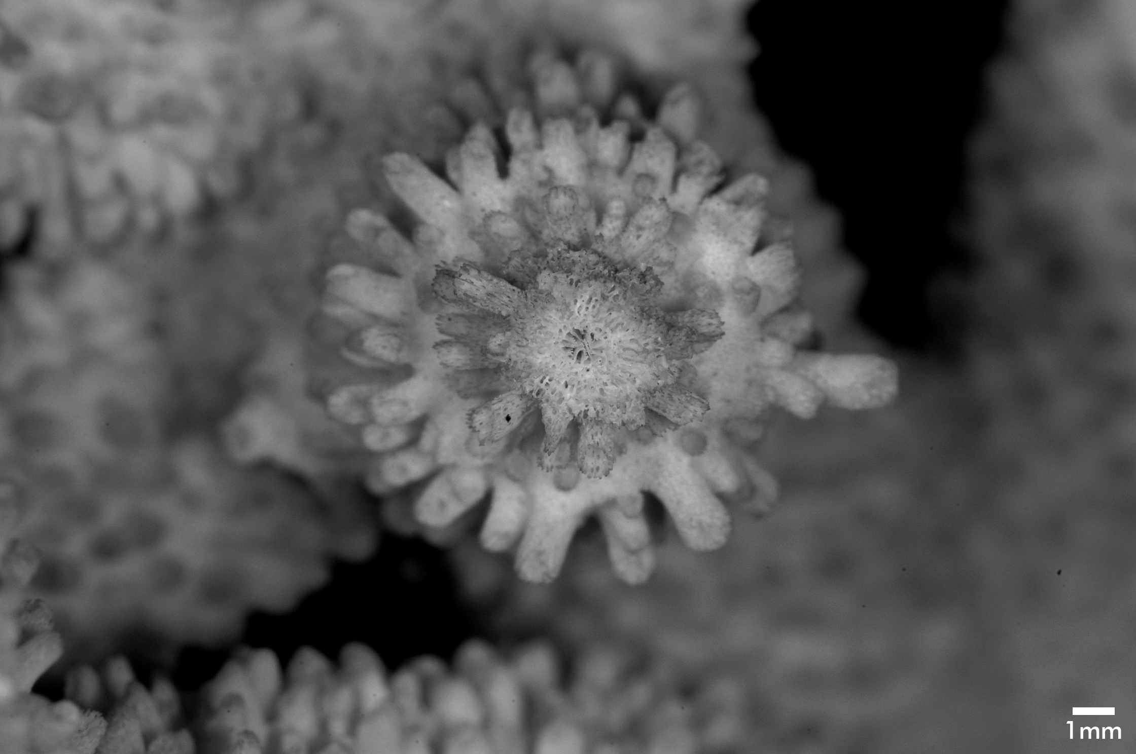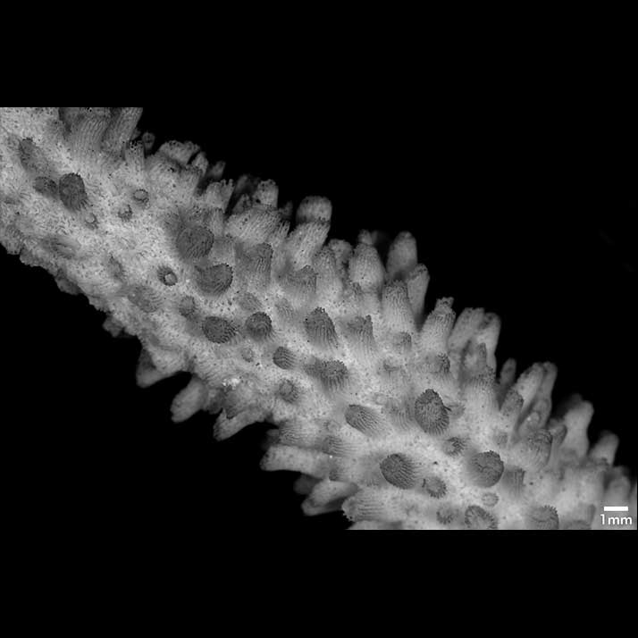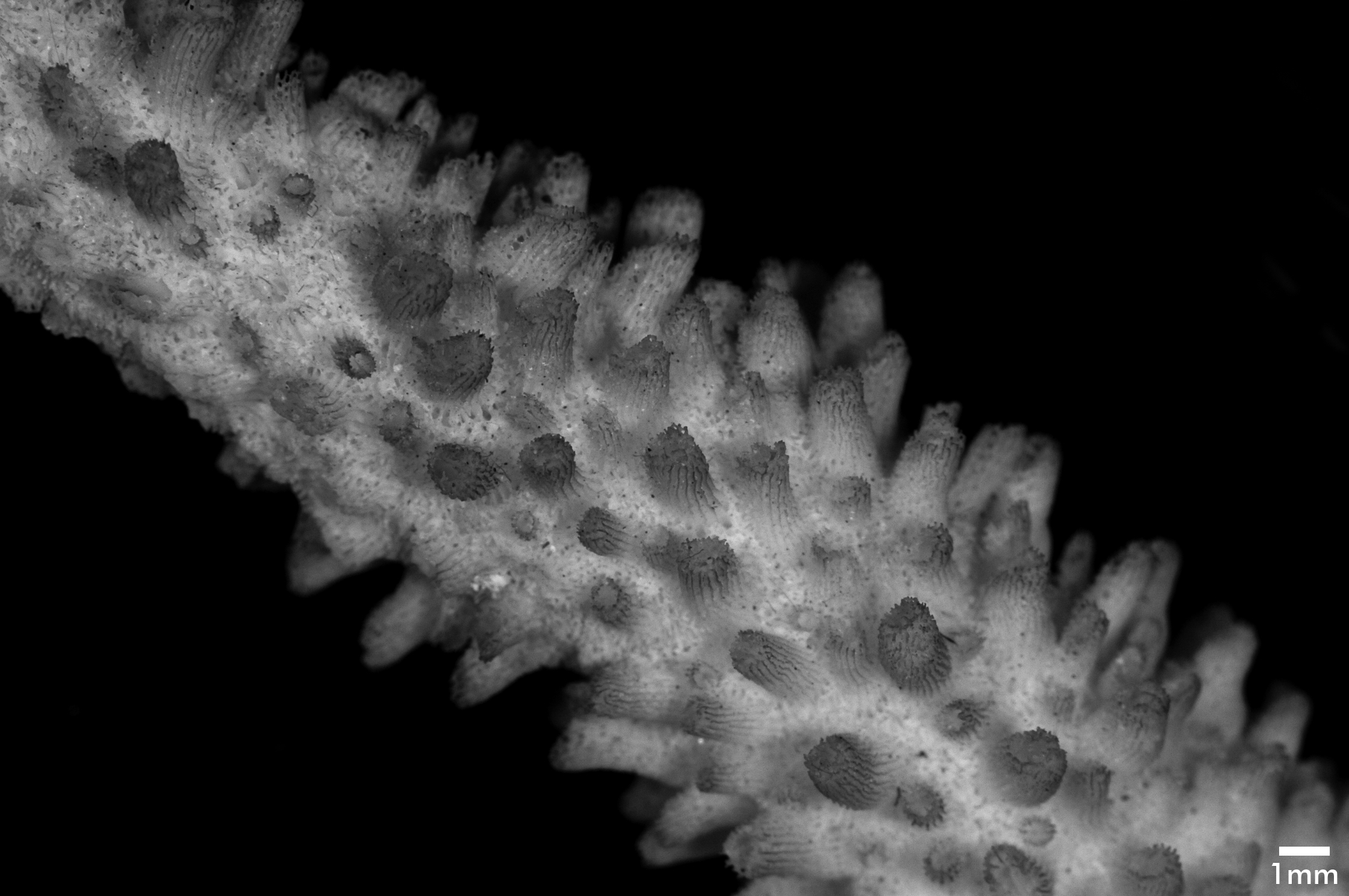 Corallum proliferous, arborescent. Branches stout, up to 1.5 cm diameter, often curved. Branchlets gradually tapering; crowded all over with corallites; one has these dimensions: length 5.5 cm, diameter at base 1.5 cm; another is 6.5 cm long, 1.3 cm diameter at base