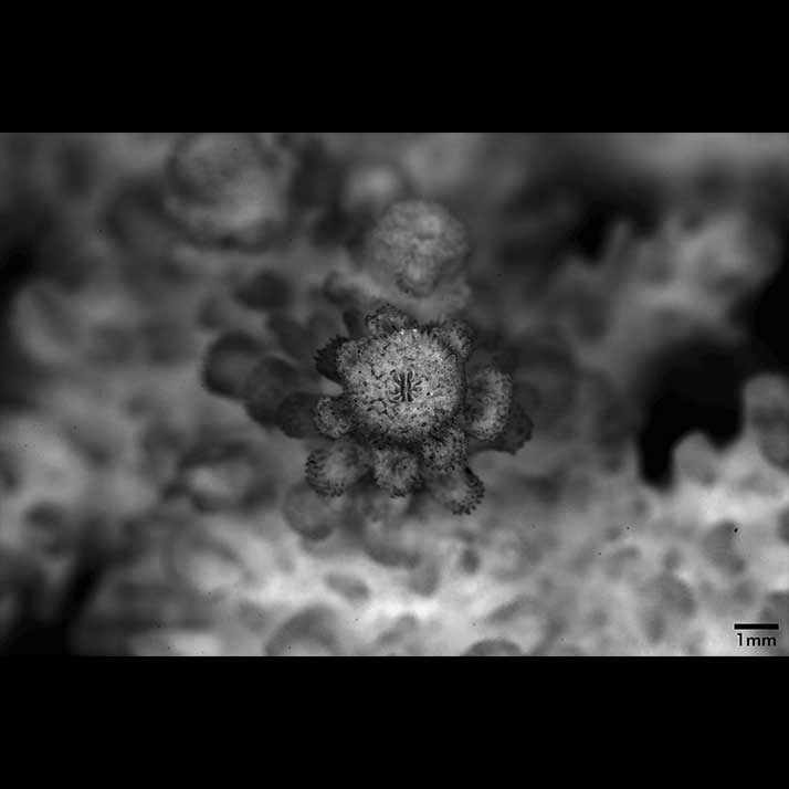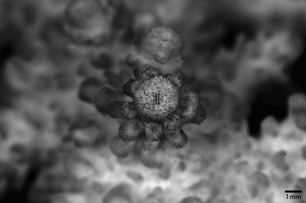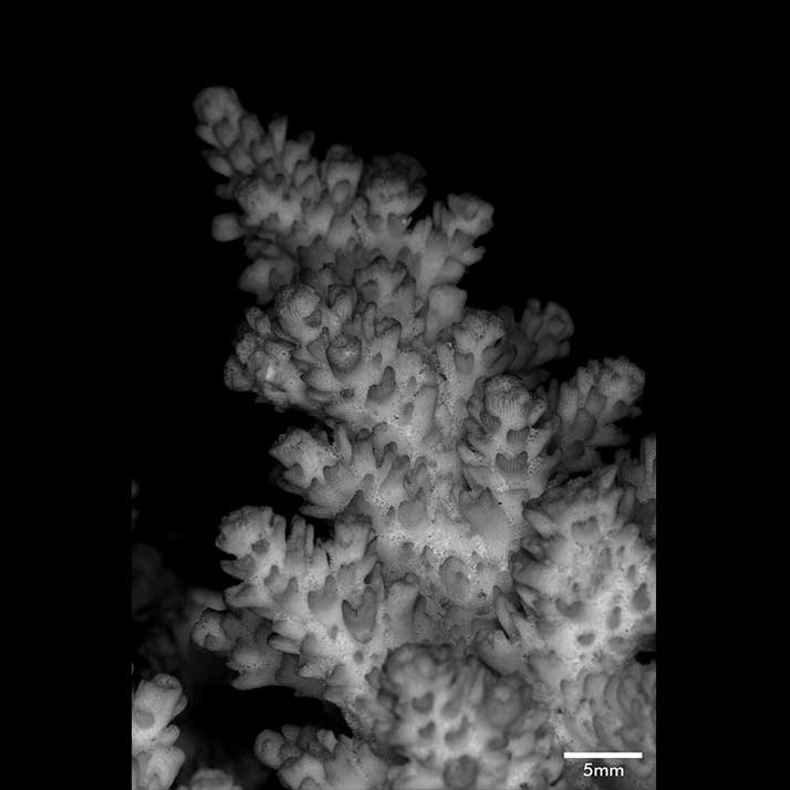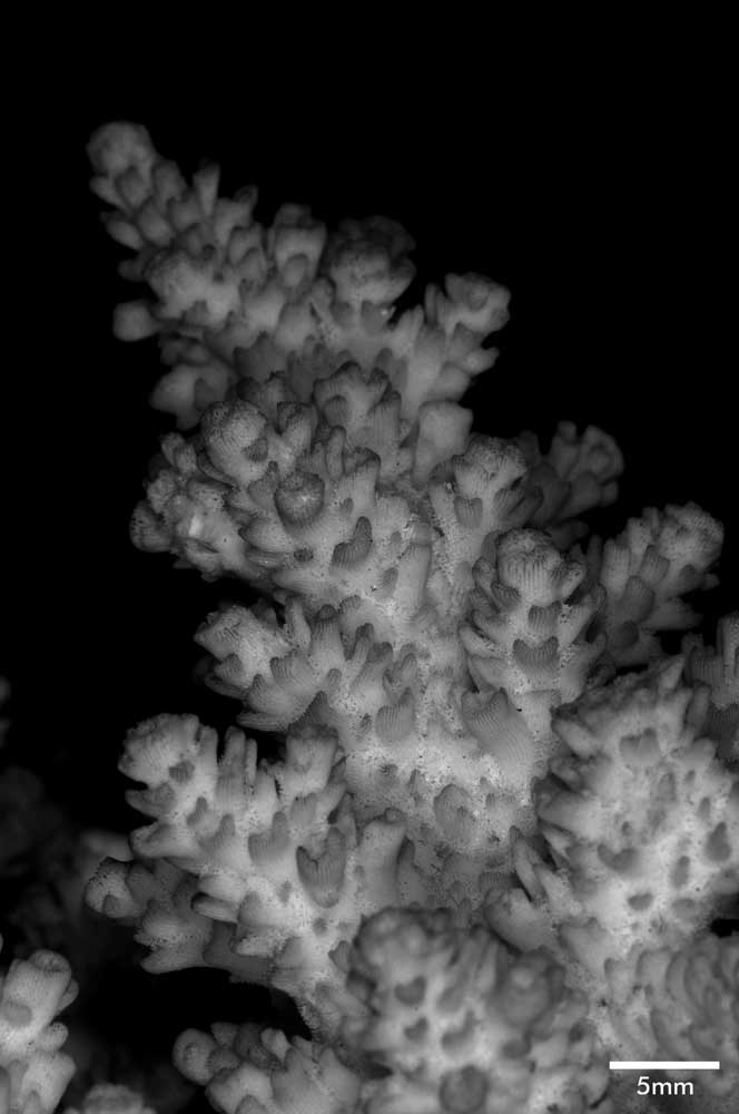 Remarks: This coral undoubtedly belongs to the polymorphagroup by its numerous short lateral proliferations. However its heavy branches, the shape and position of its radial corallites and their septa distinguish it from A. polymorpha. It is quite close to A. forskali (Ehrenberg) but for heavier stems and branches, thicker wall and absence of verruciform radials.