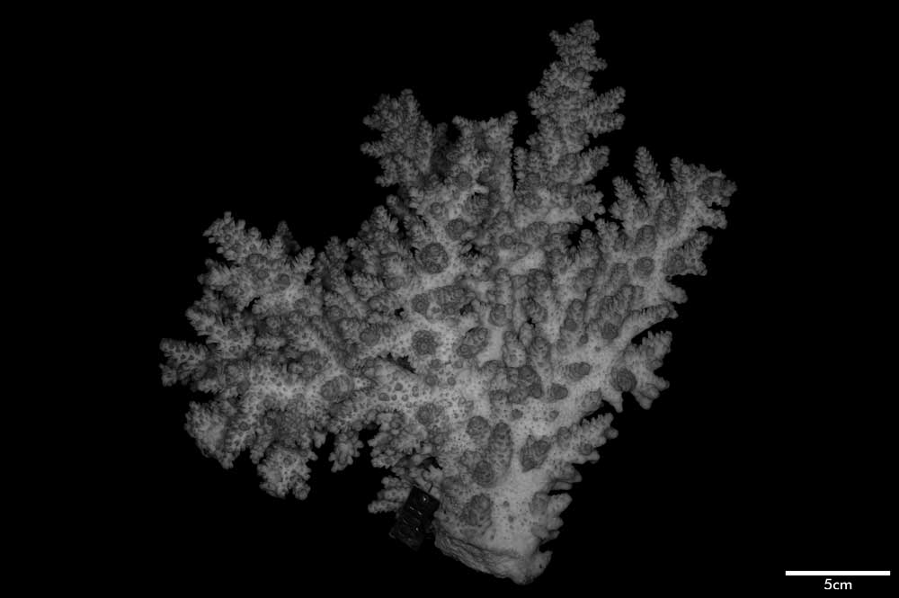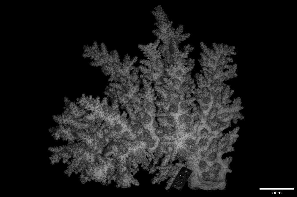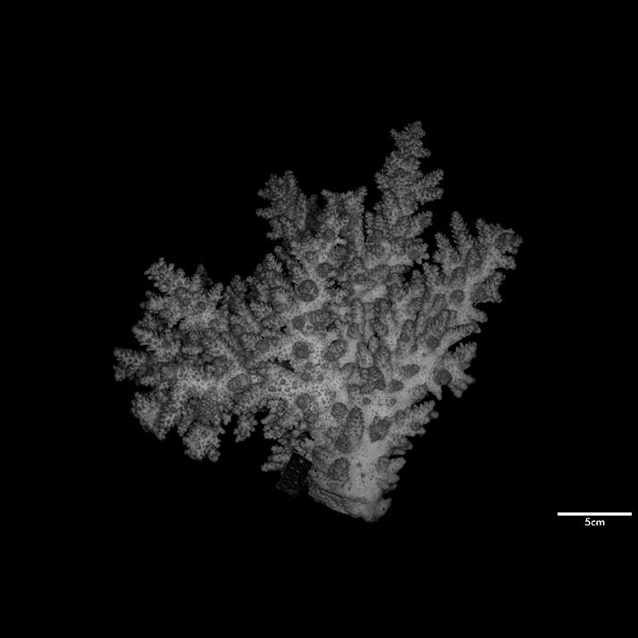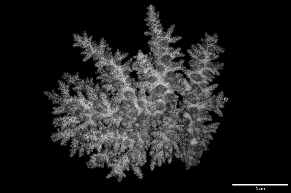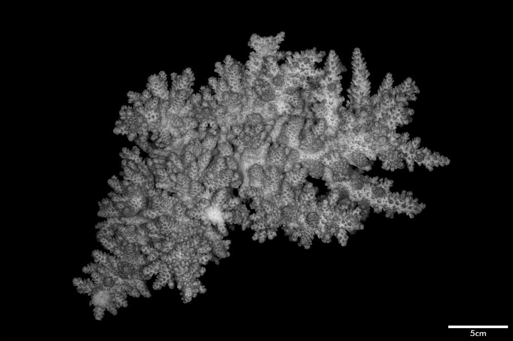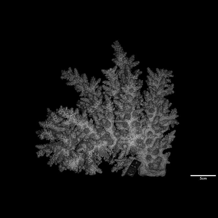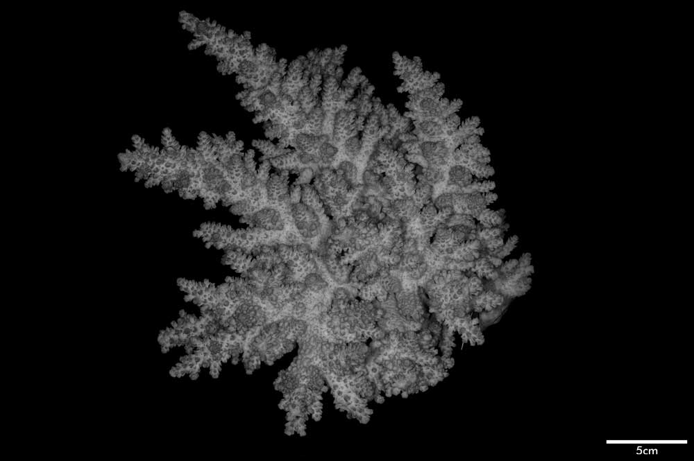 Corallum very crowded arborescent clumps of stems, branches and branchlets. Stem presumably oblique so lower and upper surfaces distinguishable; heavy, 3.5 cm diameter, closely divided into heavy gradually tapering branches. One branch: 15.5 cm long, 2 cm diameter at base, subdivided. Branches have abundant short branchlets all around but those on lower side less abundant. Branchlets on lower side almost vertical; long ones fewer on proximal region than towards apical region; simple, nonproliferous ones up to 1.3 cm high, slightly tapering to rounded or conical tips; several proliferous ones; proximal ones more terete than distal because radial corallites less prominent on former. Branchlets on upper surface crowded, rough sided because of prominent radials; tapering into acute tips; most bear branchlets. One simple unbranched branchlet 1.3 high, 6-8 mm across at base.