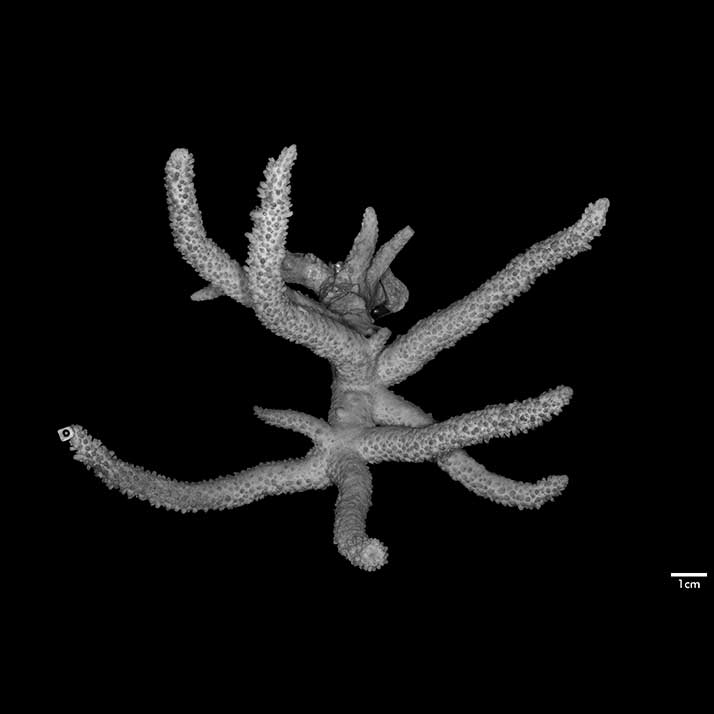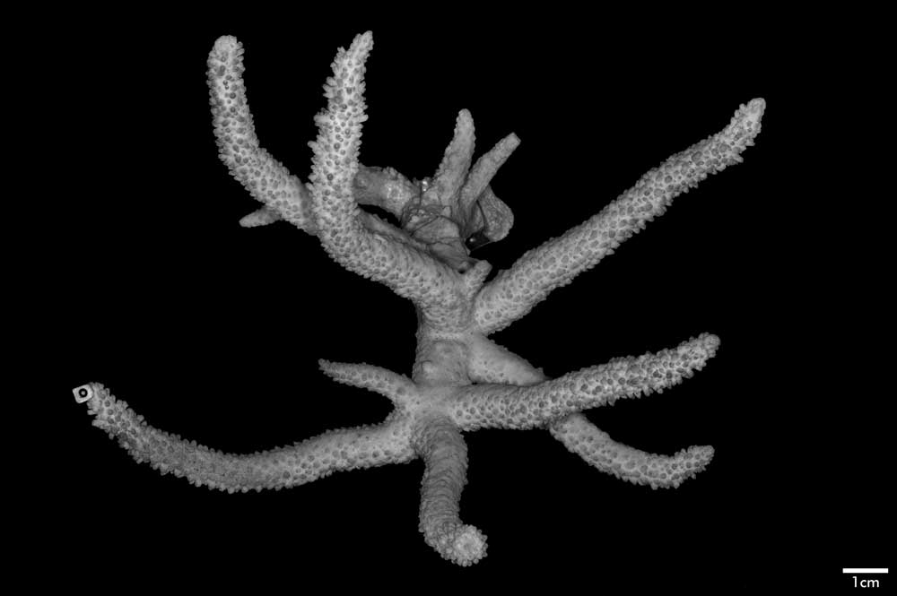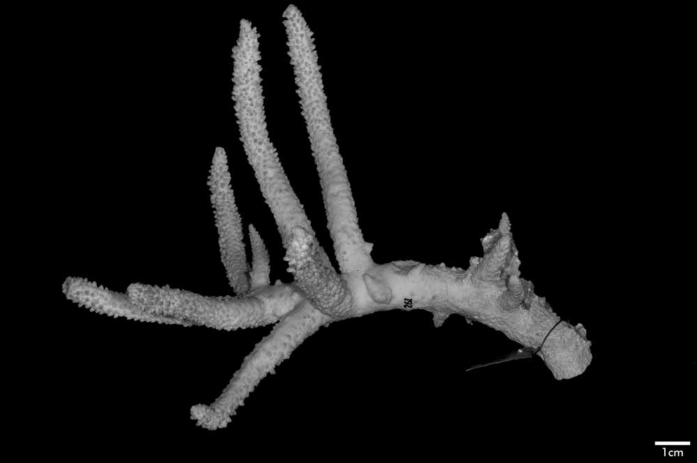 Remarks: This coral resembles A. gravida in growth from and mode of branching. It can be distinguished from the older species in its unflattened branches, very prominent septa and vermiculate intercalicinal areas.