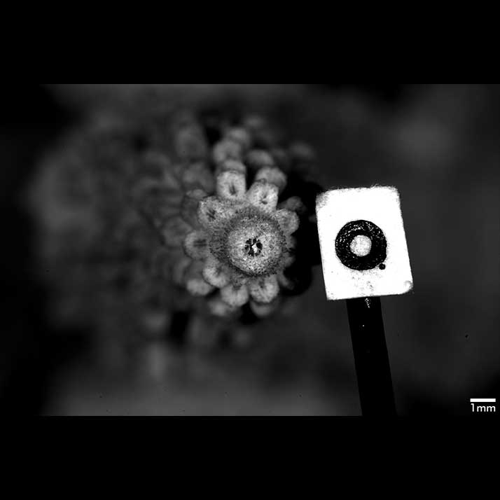 Axial corallite cylindrical with rounded edge, 2.5 mm diameter, 1.5-2 mm exsert; wall moderately thick, as thick as or little thicker than calicinal diameter, porous, finely costulate and echinulate. Septa in 2 cycles - primaries reaching or little short of radial midpoints, directive distinguishable only towards bottom of calicinal fossa where they widen; secondaries narrow, sometimes only ridges against wall.