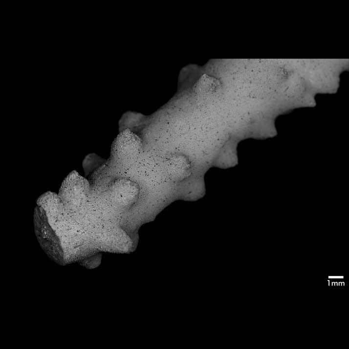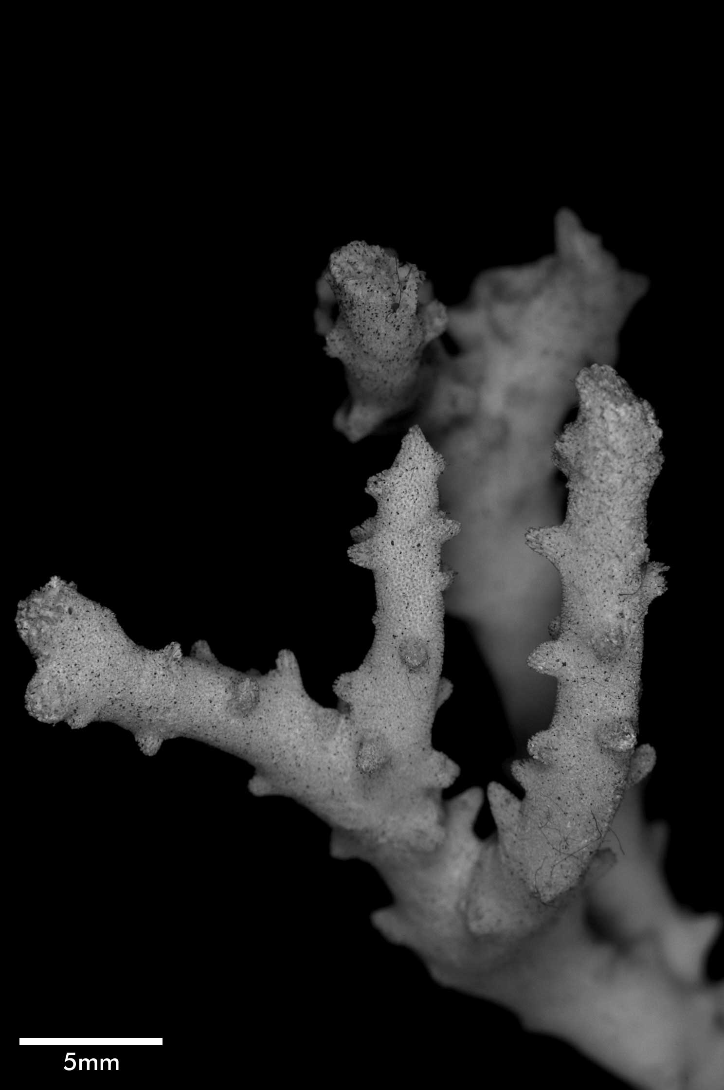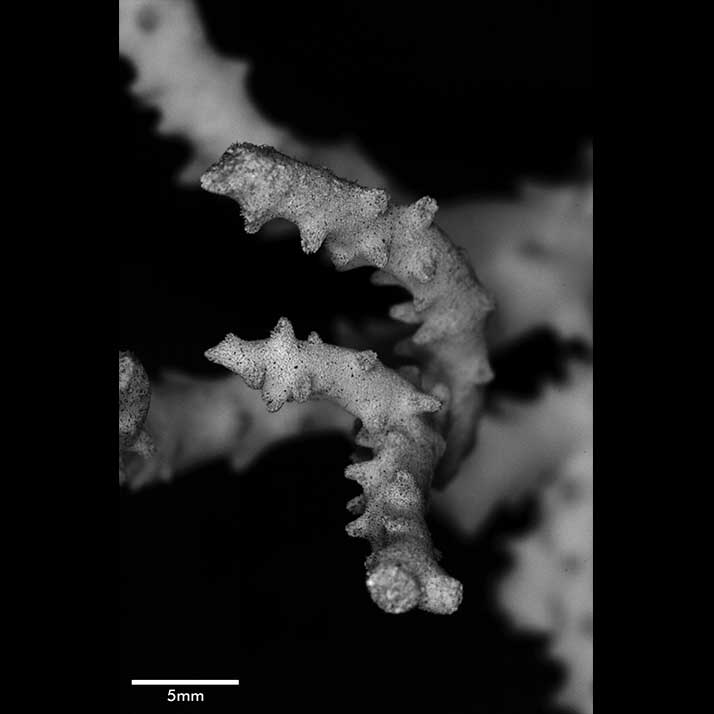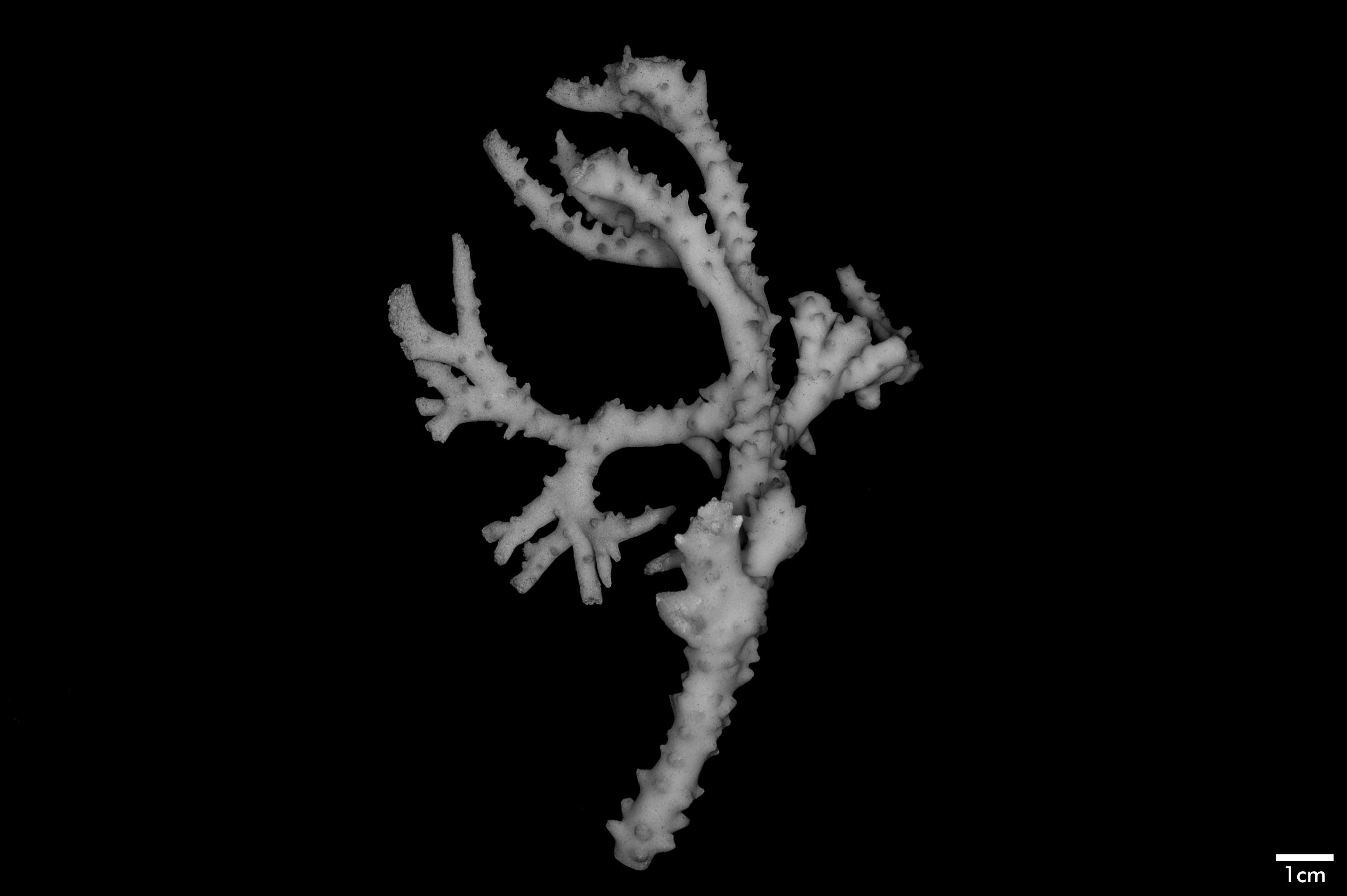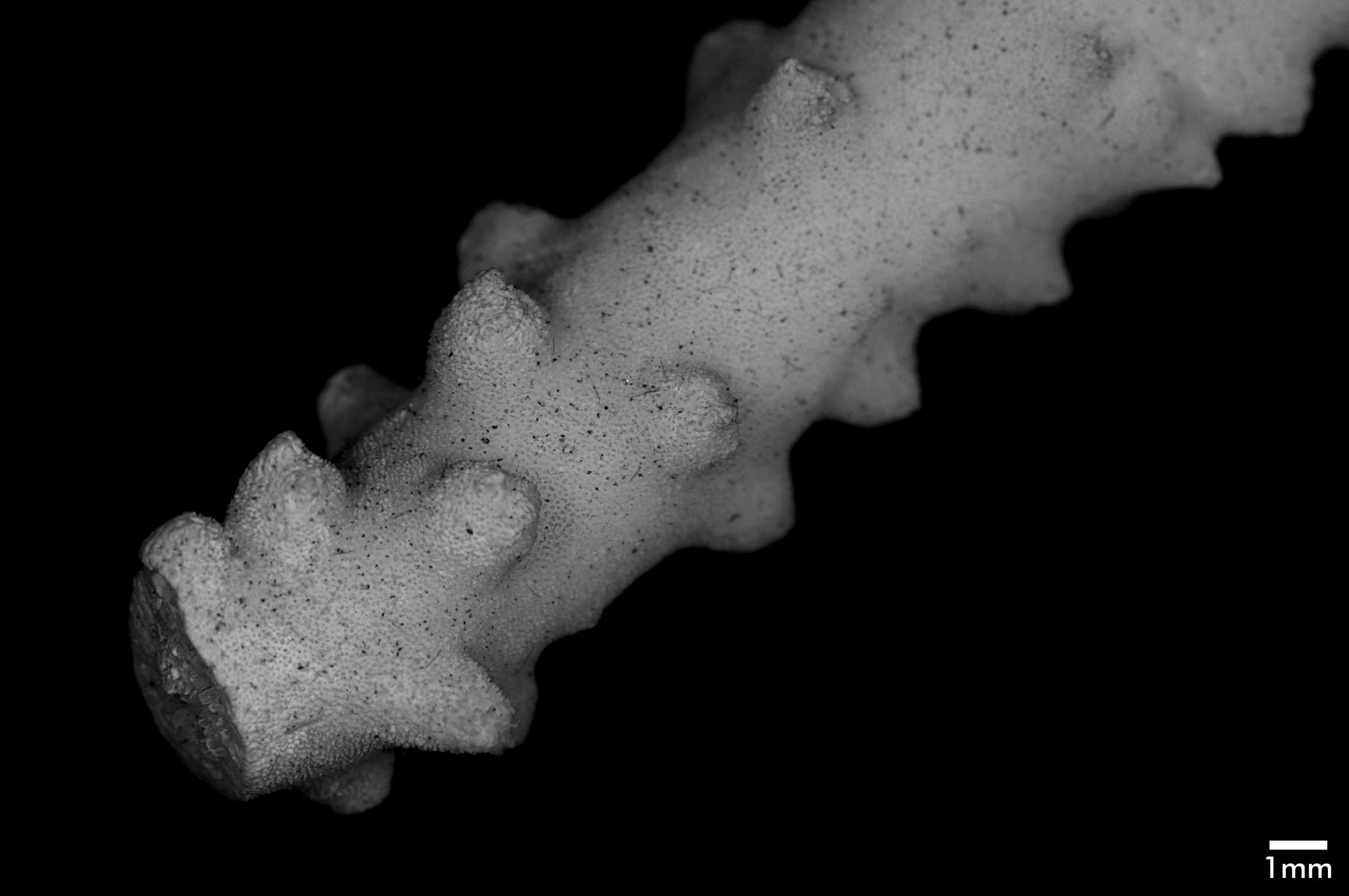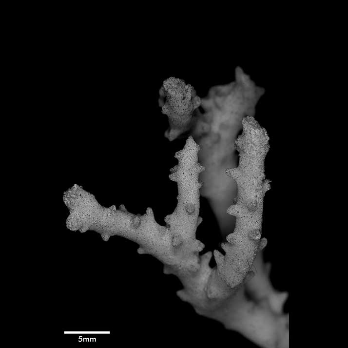 Corallum consisting of closely matted stems and branches, mostly growing parallel to each other and anastomosing irregularly. Stems very irregular in diameter, usually 4-5 mm across, wider at points of coalescence. Branches coalescent, not very different from stem in diameter, very slightly tapering, up to 7.5 cm long. Terminal branchlets tapering, up to 15 mm high, their terminal portion usually curved, tips acute. Spinous processes all over but not very abundant; merely conical swellings on stems, becoming more pronounced on branches, where they may reach 4 mm high.