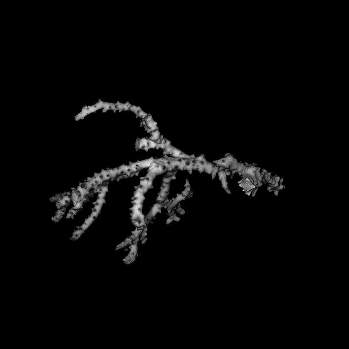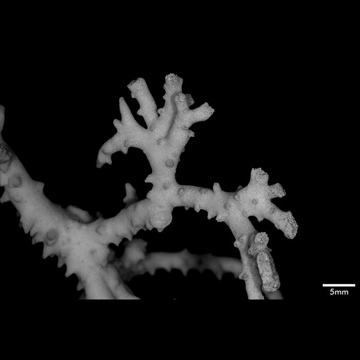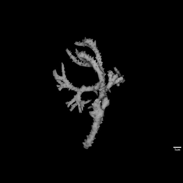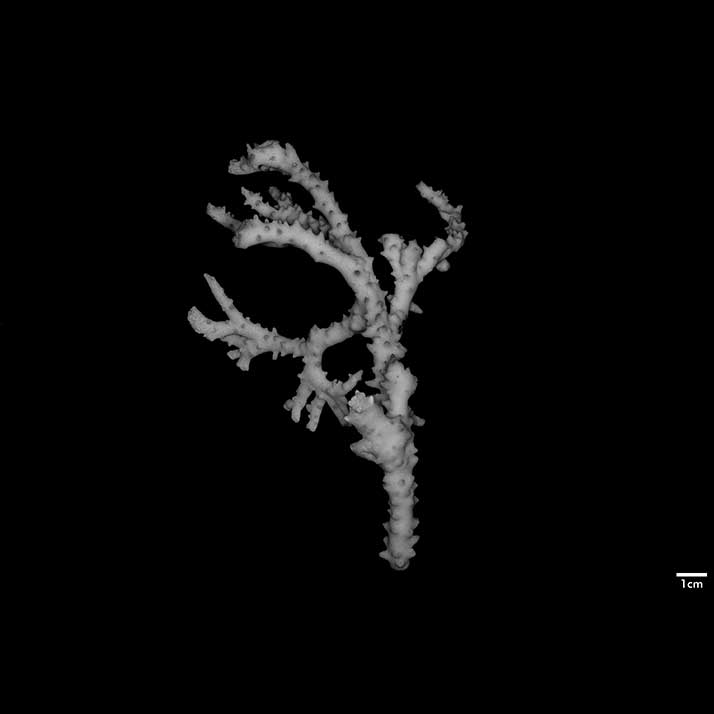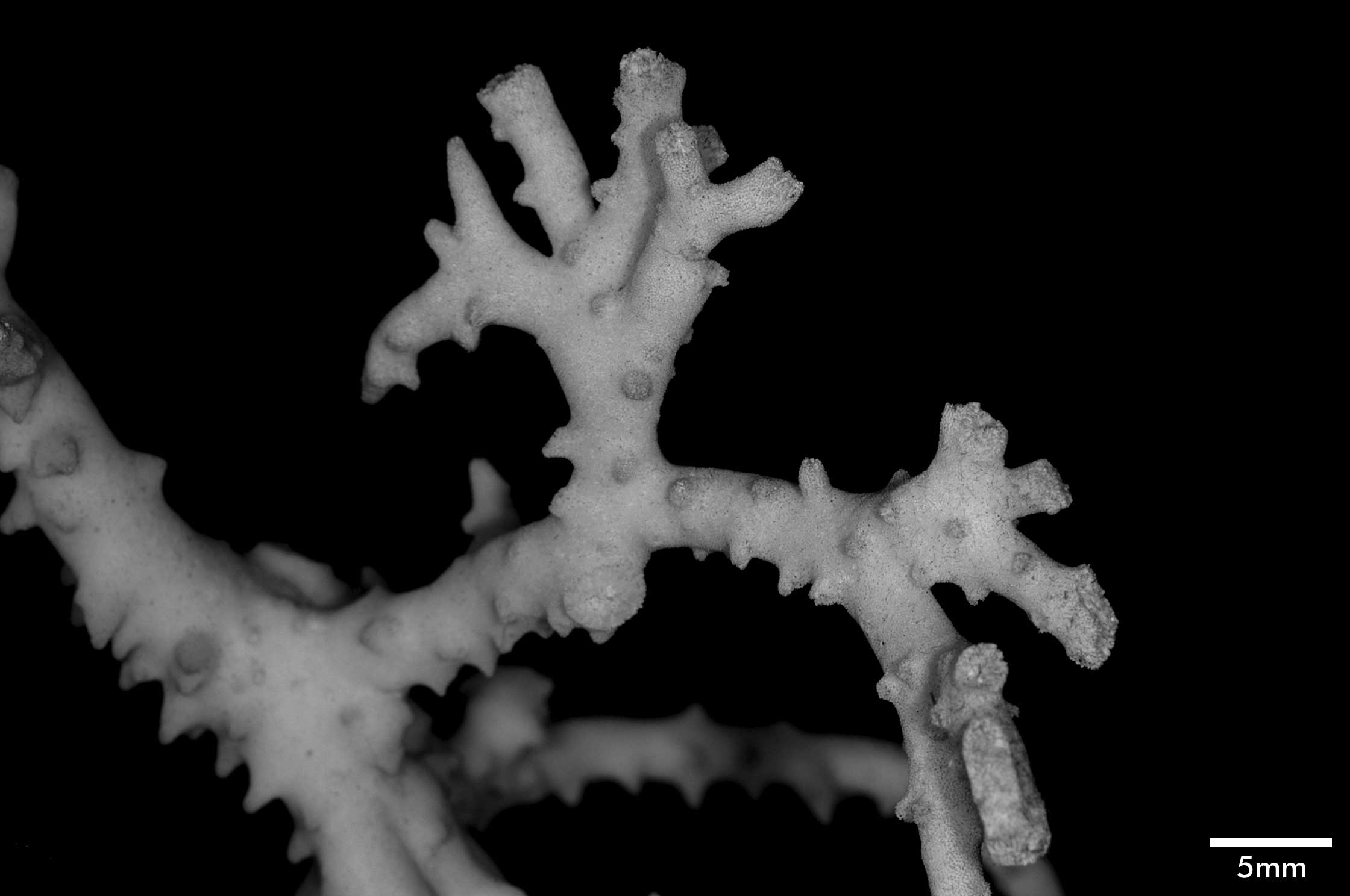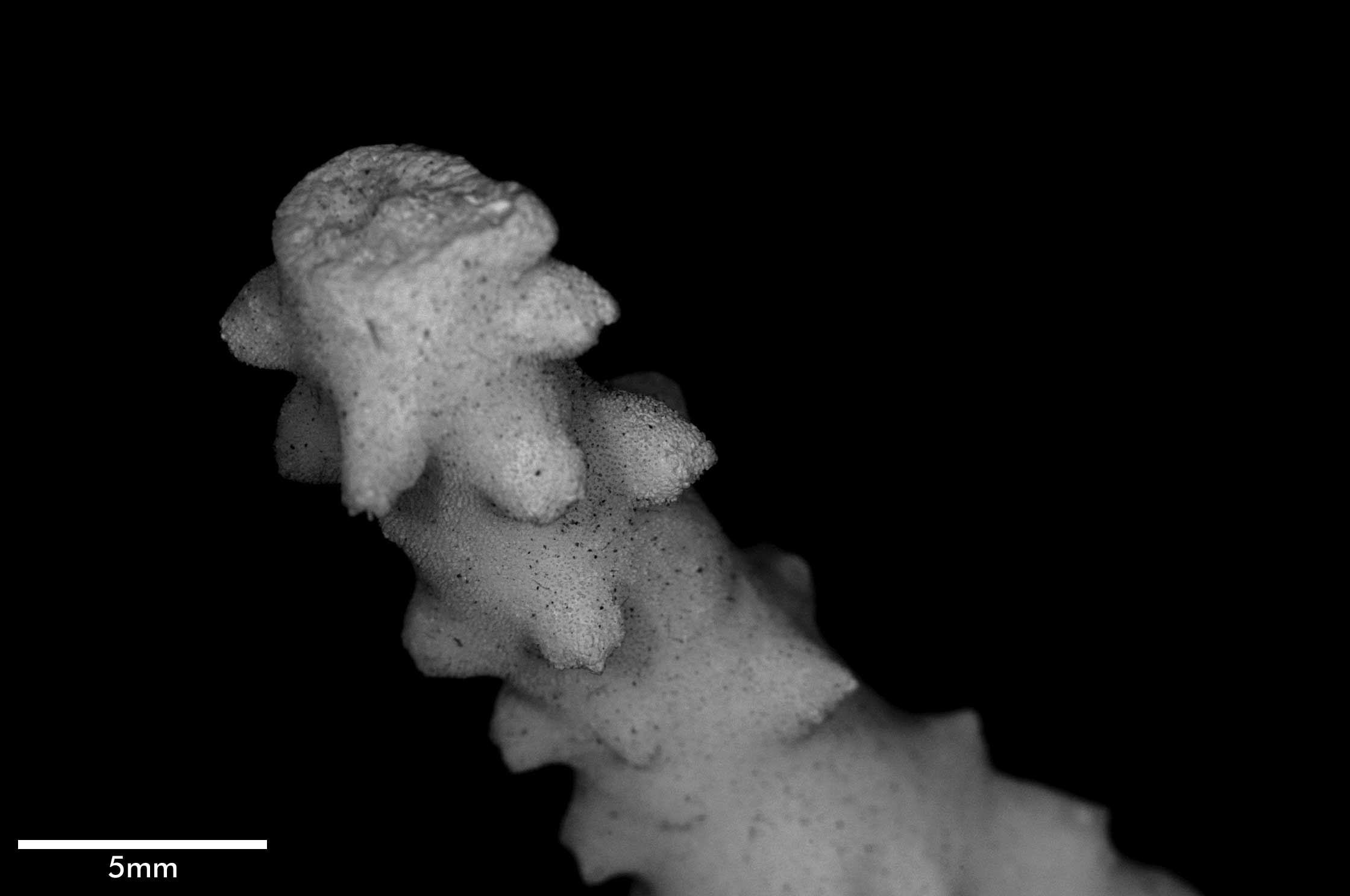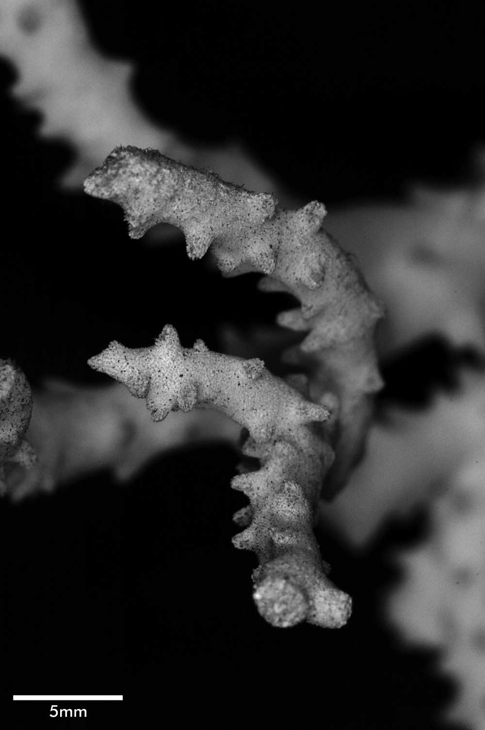 Corallum consisting of closely matted stems and branches, mostly growing parallel to each other and anastomosing irregularly. Stems very irregular in diameter, usually 4-5 mm across, wider at points of coalescence. Branches coalescent, not very different from stem in diameter, very slightly tapering, up to 7.5 cm long. Terminal branchlets tapering, up to 15 mm high, their terminal portion usually curved, tips acute. Spinous processes all over but not very abundant; merely conical swellings on stems, becoming more pronounced on branches, where they may reach 4 mm high.