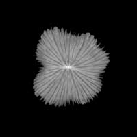 Costae very prominent along edge of corallum but gradually reduced in height and thickness inward until they become fine lines near center. Three to 5 low costae between two high ones. Costal edges bear small, low, sharp spinules; unevenly disposed; near central region, spinules very scarce.