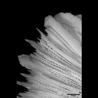 Septa in seven cycles although the seventh consists of few small ones limited along the edge. First three cycles thick and very tall, towering above the others; those of the fourth low on medial half but become almost as high and as thick as first three on their lateral half. First and second drop vertically into central fossa but third have medial ends sloping gradually. Fifth, sixth and seventh cycles much lower, developing triplet arrangement among them. Septal edges produce minute teeth on some segments, almost entire on other segments. Septal surface with minute granules. Septa imperforate except some of higher cycles. Along the edge of corallum, differences in height of septa very pronounced.