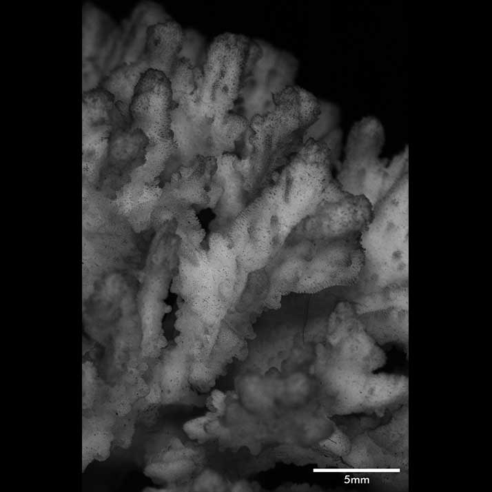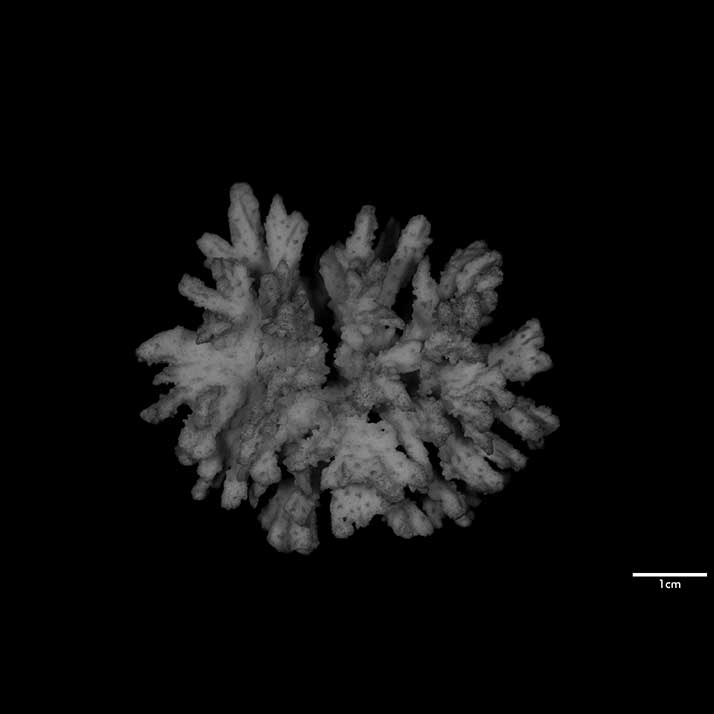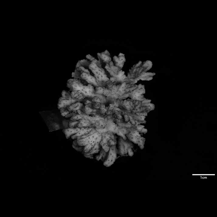Remarks:This coral resembles M. strigosa described for the first time in this paper. However, the two can be distinguished by the abundance of papillae, more prominent septa and the mostly subcylindrical terminal branchlets of the latter. C-199 is a small coral, only 5 cm longest diameter; branches pointing in all directions so that coral appears spherical; surface not as rough; calicles more distant.
