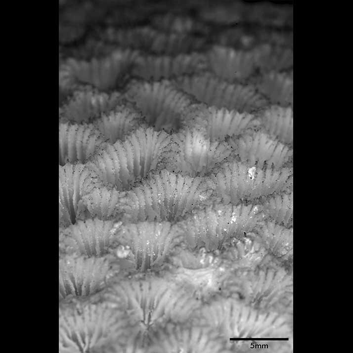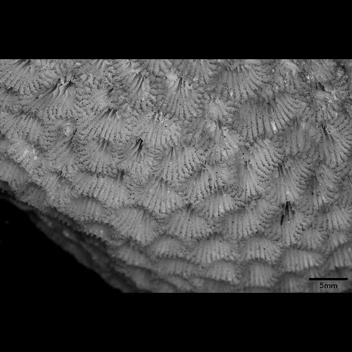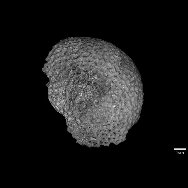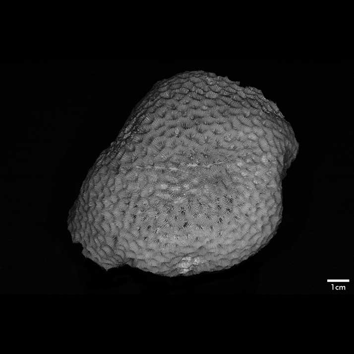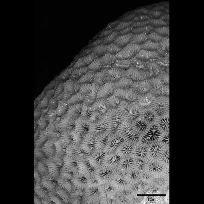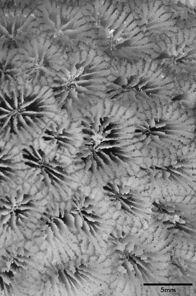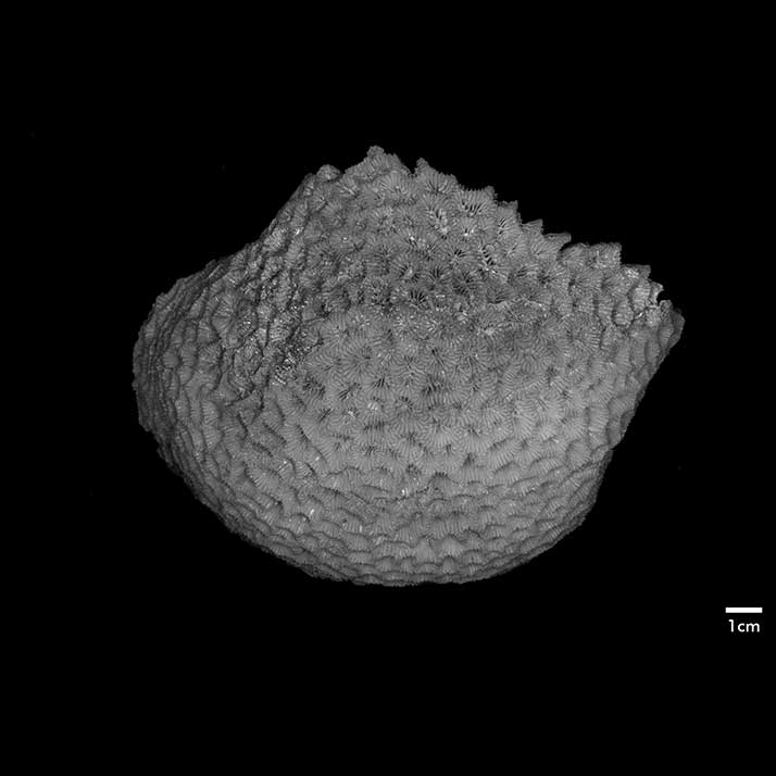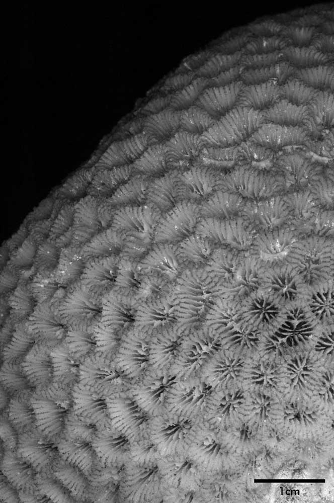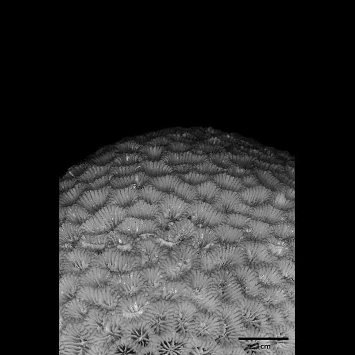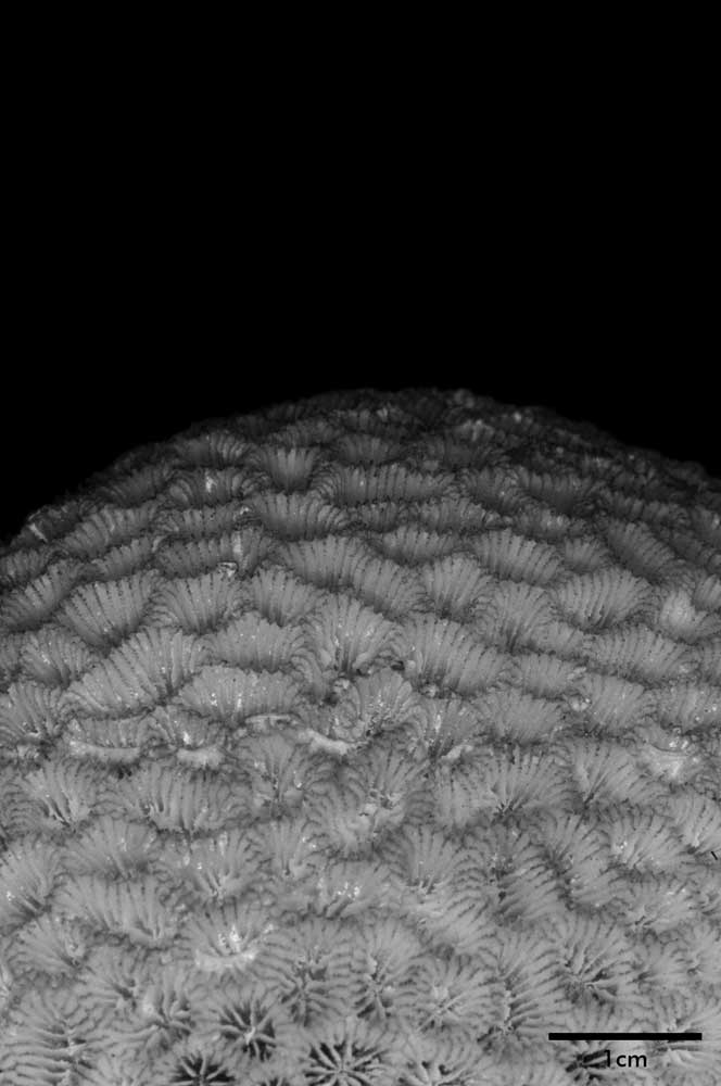 Corallum massive, consisting of several portions superimposed over old ones, separated by thin layers of epitheca; upper surface dome-shaped.