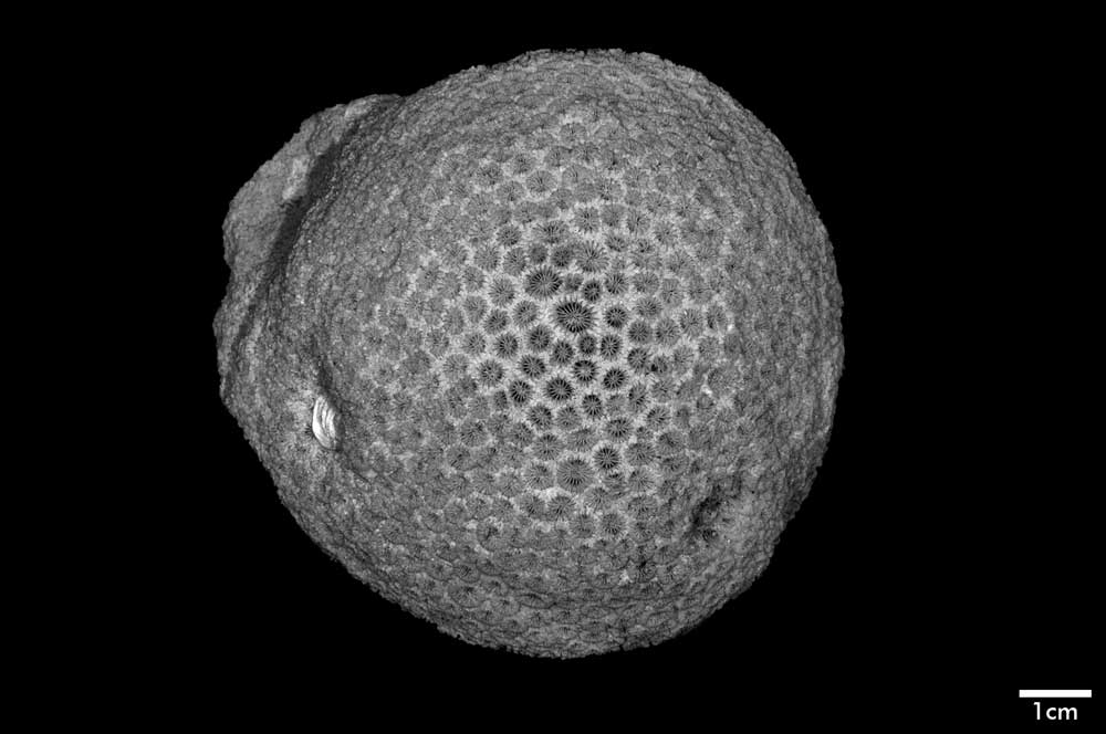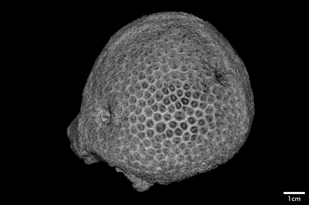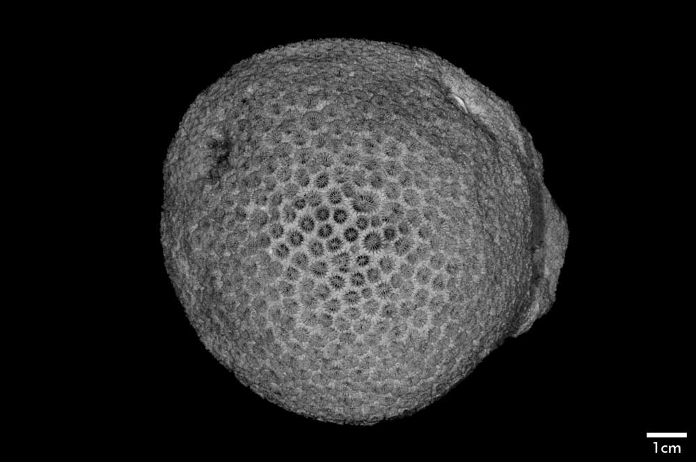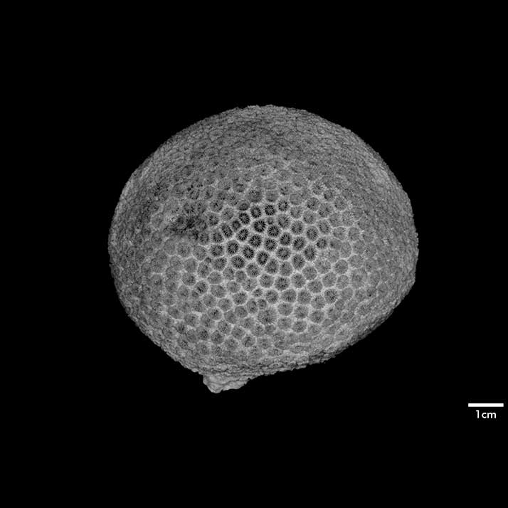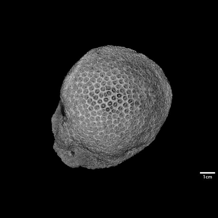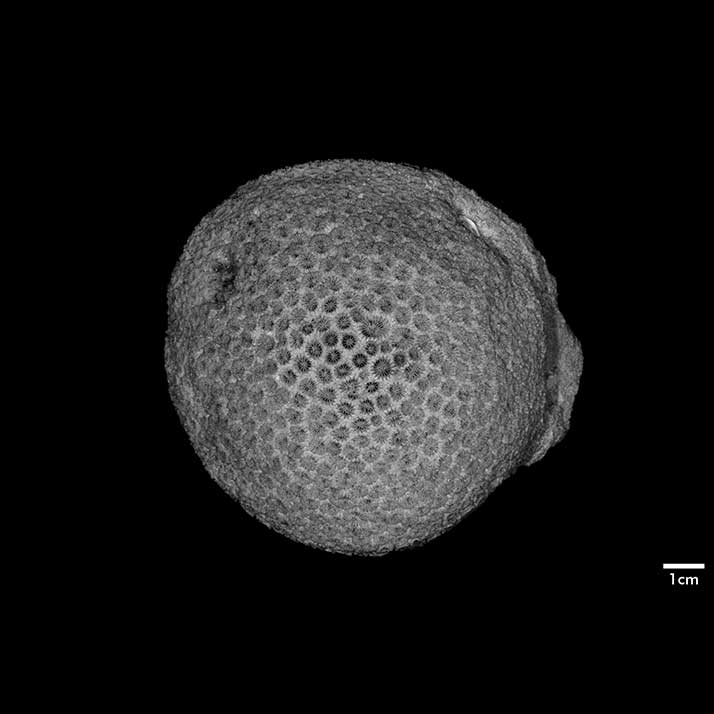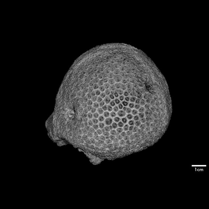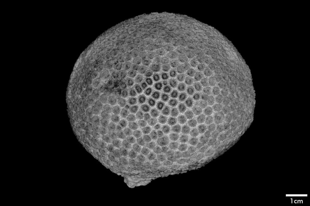 Corallum almost globular, living portion encrusting over dead portion, its margin thin, closely adherent to substratum: upper surface with very slight unevenness.