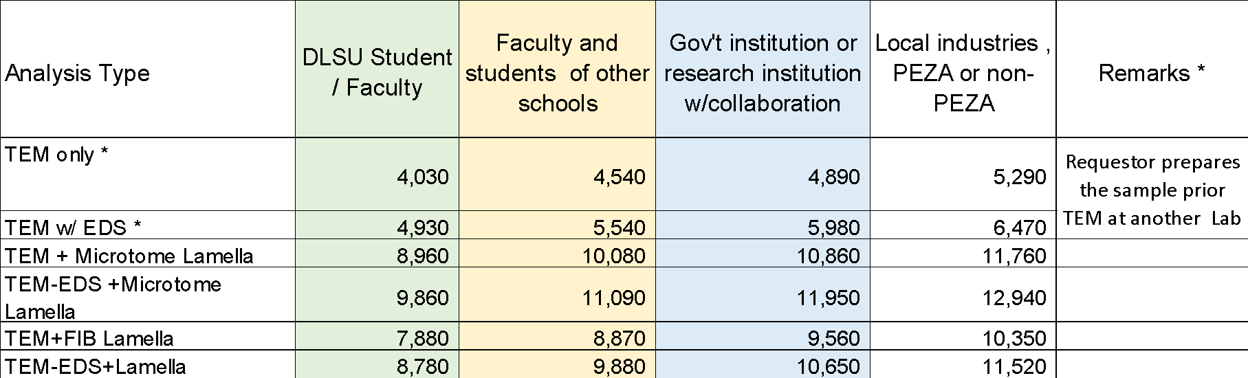 The facility offers TEM imaging as well as other modes of analysis using TEM. IEM accepts samples not only from DLSU researchers but also from outside clients (academe, government, and industry) for a fee.