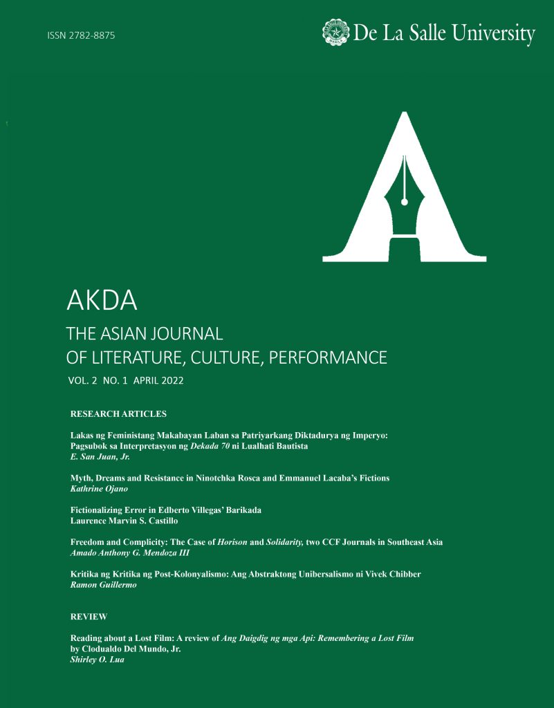 Myth, Dreams and Resistance in Ninotchka Rosca and Emmanuel Lacaba’s Fictions