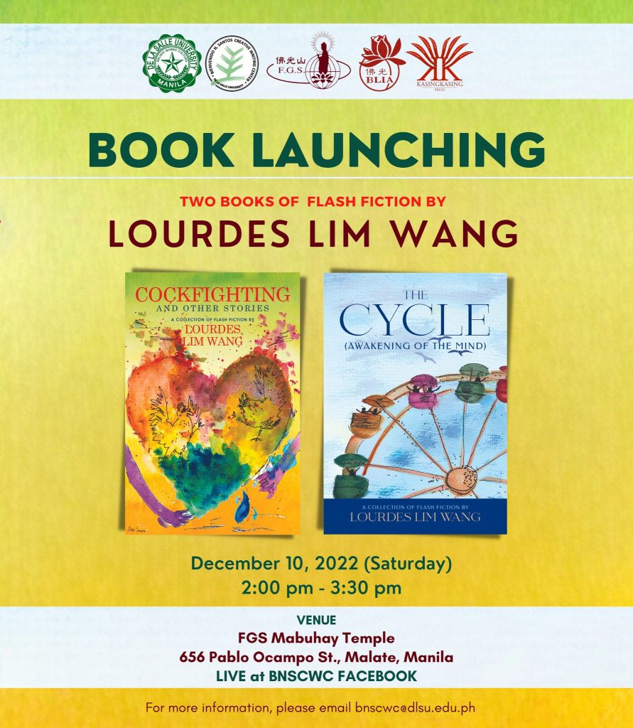 Cockfighting and Other Stories and The Cycle (Awakening of the Mind) are collections of flash fiction of Buddhist persuasions in the context of the Chinese-Filipino experience. The two books are published by the indie publishing house Kasingkasing Press. The launching is in cooperation with Fo Guang Shan Mabuhay Temple and Buddha’s Light International Association Philippines