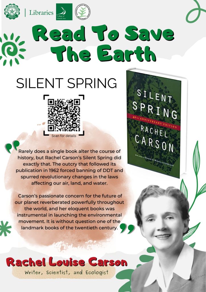 Ang mga librong itatampok sa Read to Save the Earth ay makikita, mababasa, at mahihiram sa DLSU Libraries. Lalabas ang call number ng libro kapag i-scan ang QR code sa poster.