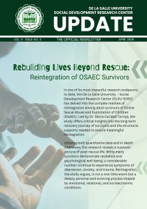 SDRC revived UPDATE, an institutional newsletter first published by the Center in the 1980s, in September 2006. The newsletter seeks to keep the public abreast of the Center’s activities, works in progress, and accomplishments. Through UPDATE, it is hoped that the Center’s project directors can be presented “in a more up-close fashion” and that information about their projects can be made more readable and comprehensible.