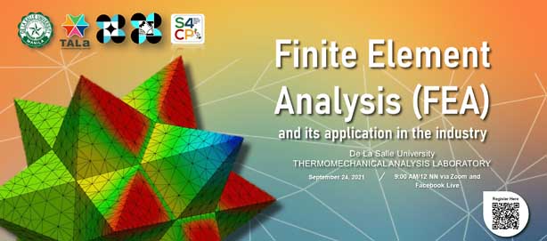 Tune in on the online lecture via Zoom or Facebook live this Sept. 24, 2021; 900AM to 12NN Philippine time to learn about Finite element analysis (FEA) and its application in the industry.
