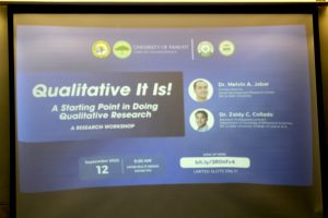 The seminar opened with Department of Sociology and Behavioral Sciences faculty member and SDRC research associate Dr. Zaldy Collado sharing his expertise in “Establishing Quality Standards in Qualitative Research,” followed by DSBS professor and former SDRC Director Dr. Melvin Jabar introducing the group to “Qualitative Data Analysis and the Use of NVivo,” a helpful computer software program. They were joined during the visit by new SDRC Director Dr. Homer Yabut, who gave the closing remarks to conclude the event.