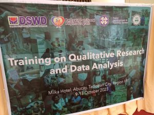 The latest in SDRC’s Capacity Building Training Series was conducted for Regional Monitoring and Evaluation Officers (RMEOs) and select National Program Management (NPM) staff of the Department of Social Welfare and Development from across the regions. Held in Abucay, Tacloban from October 9 to 13, 2023, the four-day training was conducted to help the MEOs and program management staff improve their skill sets in receiving and handling qualitative data.