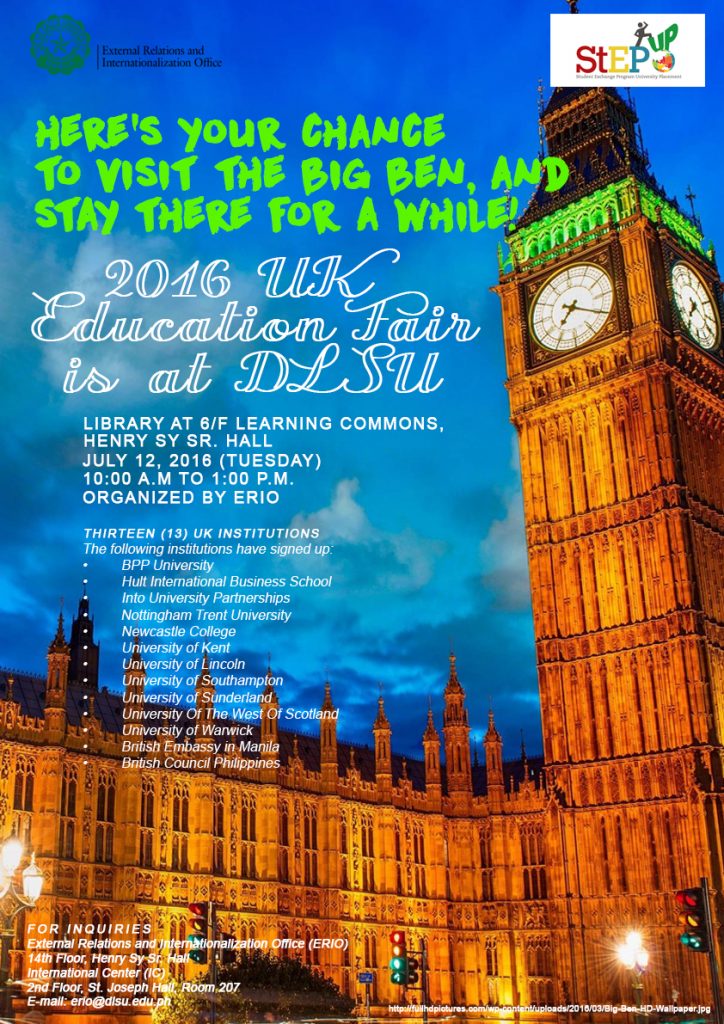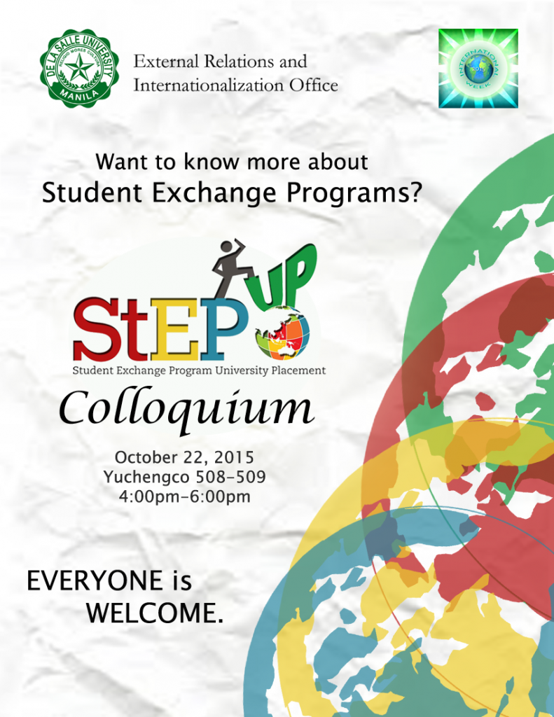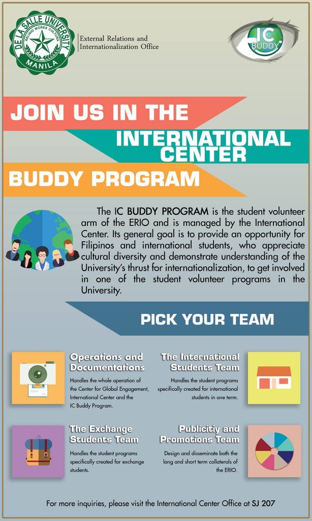 For more info, visit DLSU International Center at SJ 207 or email [email protected]