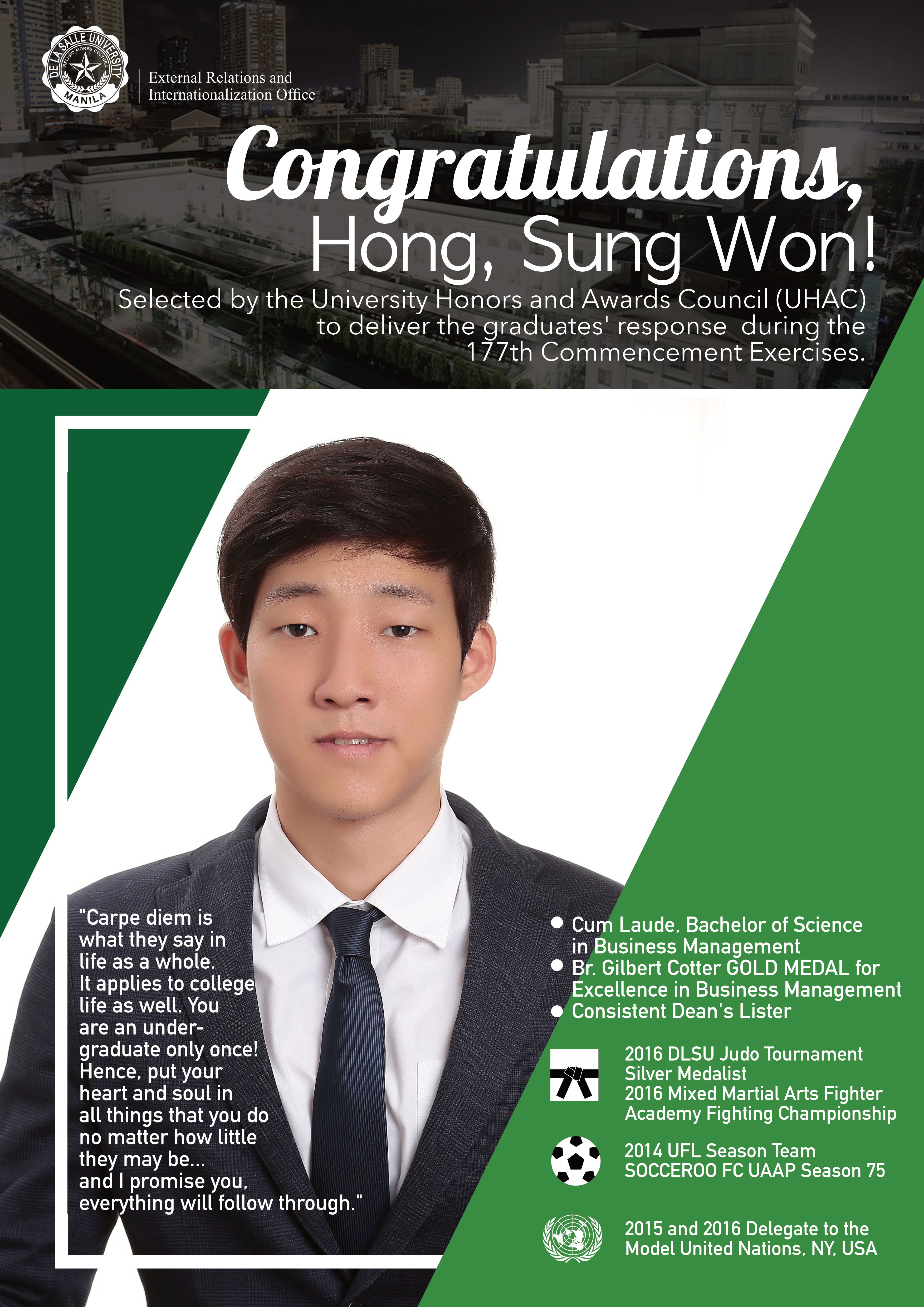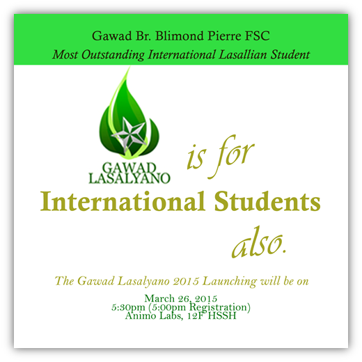 - Search for the Three Most Outstanding Lasallian International Students in the Philippines