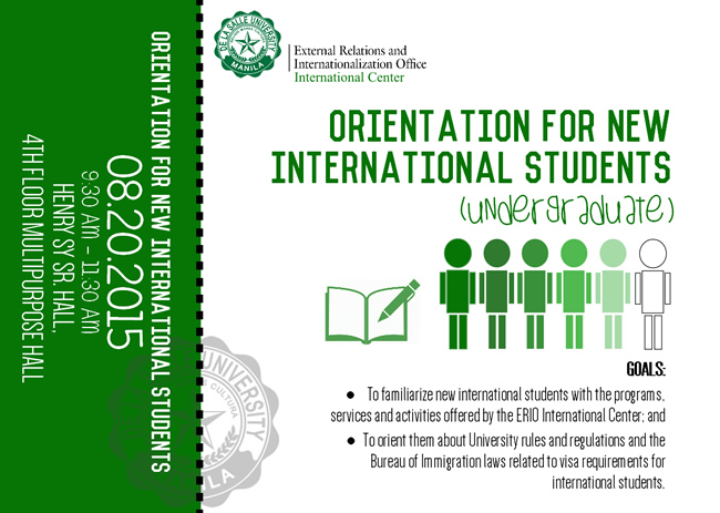 Please be reminded of the Schedule of Application for Special Study Permit AY 2015-2016 to avoid delays in your enrollment and consequences of non-compliance (specific dates may change depending on the University Calendar and the Bureau of Immigration updates):